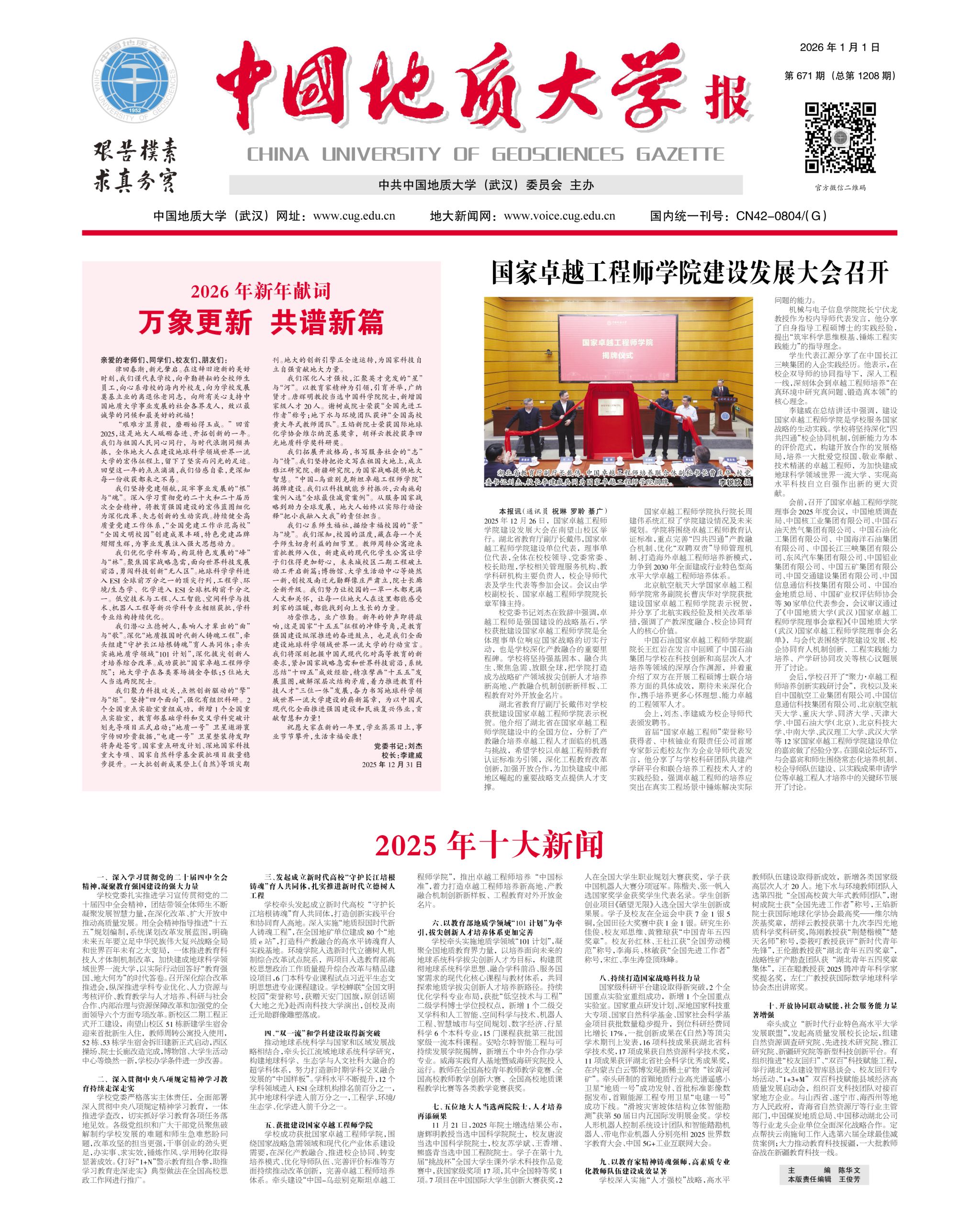 中国地质大学(武汉)2026年新年献词:万象更新 共谱新篇