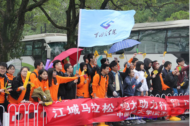 用汗水见证美丽江城 用奔跑展示精彩人生 这场比赛中,地大人与风雨同路,共迎挑战。窦斌、陶章元等6名教职工和阳经纬等8名同学完成全程42.195公里的比赛,9人完成半程马拉松,6人参加13公里健康跑。其中窦斌以2小时58分56秒杀进3小时大关,夺得全马比赛第88名,陶章元以3小时33分11秒跑完全程,较去年提高46分钟,我校第四纪跑团获团体第五。 环境学院的阳经纬同学是第一次参加汉马,内心激动与兴奋交织。比赛前夜,他难以入睡,“最后一次看手机时已过两点”,4月9日清晨五点从梦中惊醒,跳下床简单用餐后便赶去与跑团汇合。7时30分比赛开始,阳经纬跟随人潮向前涌动,出发约三公里后开始下雨,“雨越来越大,衣服鞋子很快就湿透了,但这又如何,继续前进吧!”他暗自给自己打气。到了沙湖大桥(20公里),用时1小时46分,阳经纬自喜有希望跑进四小时。然而跑至25公里,他开始感觉小腿发硬,到了东湖,风成了他最大的敌人。回忆起最艰难的最后六公里,阳经纬感慨坚持不易,“腿灌了铅似的越来越重,速度直线下降,看着其他人渐渐远去的背影,内心很无助,但我必须坚持”。终于,在一个弯道过后,终点拱门近在眼前,伴着此起彼伏的加油呐喊,阳经纬迈开腿向终点奔去,击掌,高举双手,跨过终点,成绩定格在4小时13分! 在阳经纬眼中,马拉松是一项累并快乐着的运动。他说:“通过马拉松,我能一步一步丈量武汉,在奔跑的过程中感受它的魅力,这让人心旷神怡”。当问及参赛最大的感受时,这个精干的小伙子连说了三遍感动,“回想起向着目标不断前行的经历,不由自主地热泪盈眶。” 陶章元已参加过八次全程马拉松,他说:“马拉松比赛是我人生道路上一道亮丽的风景线,这次能在雨中挑战汉马别有风味。和老师同学们一起奔跑在美丽的赛道上让人心旷神怡。” “人要定一个可完成的目标,并坚定内心,不断为之努力。”这是窦斌参加汉马的感悟。 用微笑点亮春雨江城 用镜头记录动人瞬间 李四光学院、经济管理学院和工程学院各派出40名志愿者一起组成志愿啦啦队,为参赛选手们加油鼓劲,给予精神鼓励。比赛当天,120名志愿者比赛开始前便已就位,顶风迎雨,等待着选手们的到来。来自经管学院的刘禹婷是本次汉马志愿啦啦队的一员,汉马参赛者拼搏的身影让她印象深刻,“看到了参赛的残疾人,还有很多老爷爷,虽然他们速度并不快,但他们一直在坚持。我被他们超越自我、超越极限的精神所震撼,希望自己能好好锻炼,有朝一日也能参加汉马。” 按汉马主办规定,每一个志愿服务节点需等待最后一名参赛者通过后,方能撤去。由于被安排在位于比赛后半程的30公里节点,120名志愿者从早上八点便坚守在岗位上,直到十二点最后一名选手通过。虽天公不作美,阴雨寒风交加,但志愿者们始终保持高涨的热情,为每一位参赛者呐喊助威。刘禹婷说:“那天真的很冷,但我们既然来了就要坚持下去。”志愿者们的热情也得到了选手们的回应。不少人通过时给他们竖起大拇指、比心或双手合十表示感谢,有的则特意跑到志愿者身前与他们击掌,还有专门停下合影的人。“这让我们觉得所做的一切都是值得的,心暖了,身体就没那么冷了。”刘禹婷回忆道。 作为武汉马拉松的十位学生摄影记者之一,环境学院大三学生何健辉用镜头记录着汉马的故事。作为摄影记者,他主要负责和同组文字记者做一些特色跑者和老年跑者的报道。为了弘扬汉服文化穿着汉服完成全马的同袍、从上海远道而来完成全马的67岁老人……一个个精彩的汉马故事定格在何键辉的镜头中,汉马所蕴含的正能量也得以影响一座城。何健辉本想参加汉马的比赛,可不幸落选,便报名学生记者。“因为错过了第一届汉马,所以不想错过第二次,得知汉马招募学生记者的时候,我就毫不犹豫的报名了。”对此,他表示,换一个视角去看汉马,换一个身份去参与汉马,感觉一样的开心与自豪。 参赛者、志愿者、学生记者,地大人通过不同的方式参与汉马,以不同的角度助力汉马,始终坚守岗位,风雨同行。他们用各自的“奔跑”方式感动了这座城。