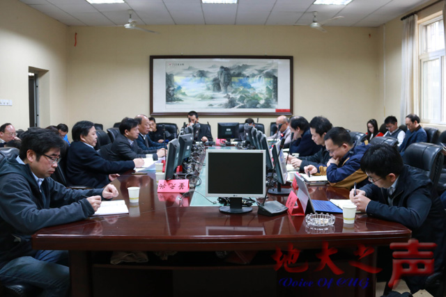 (地大之声记者庞伟红 摄影钟姗)4月11日,湖北省教育厅科技处处长王强一行来我校调研基地建设情况并召开座谈会,省教育厅科技处、校科发院、协同创新中心、基地、文科学院相关负责人参加座谈。