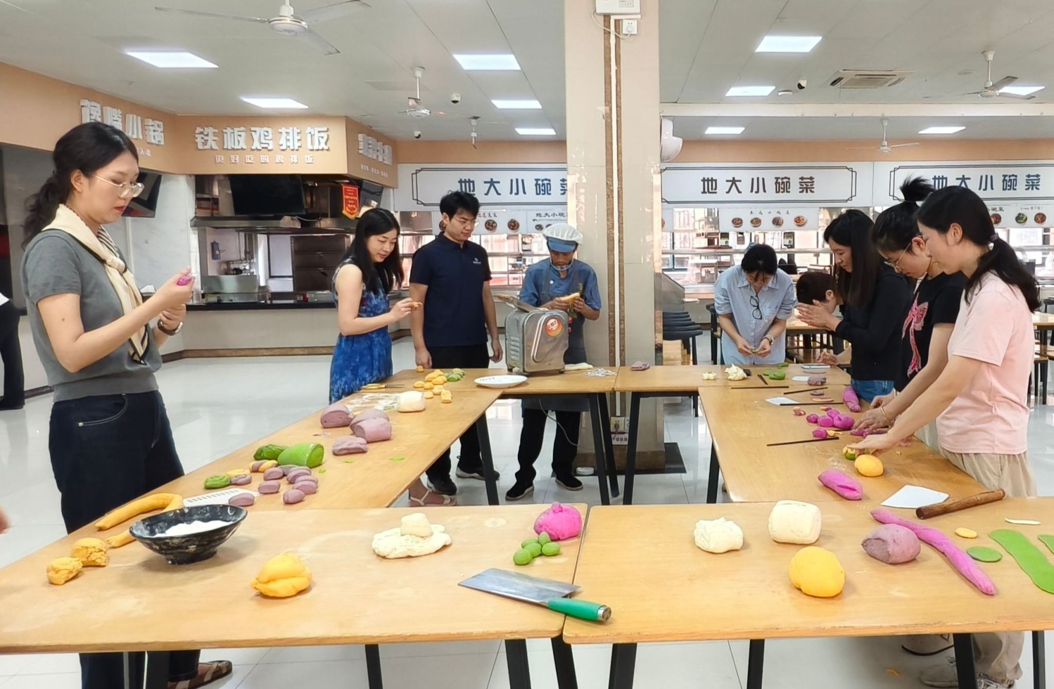 在校园美食制作体验环节,老师们热情高涨,纷纷动手参与制作地大文创花样面点。在协作与欢笑中,大家不仅体验了传统美食的制作乐趣,更在互动中增进了了解。