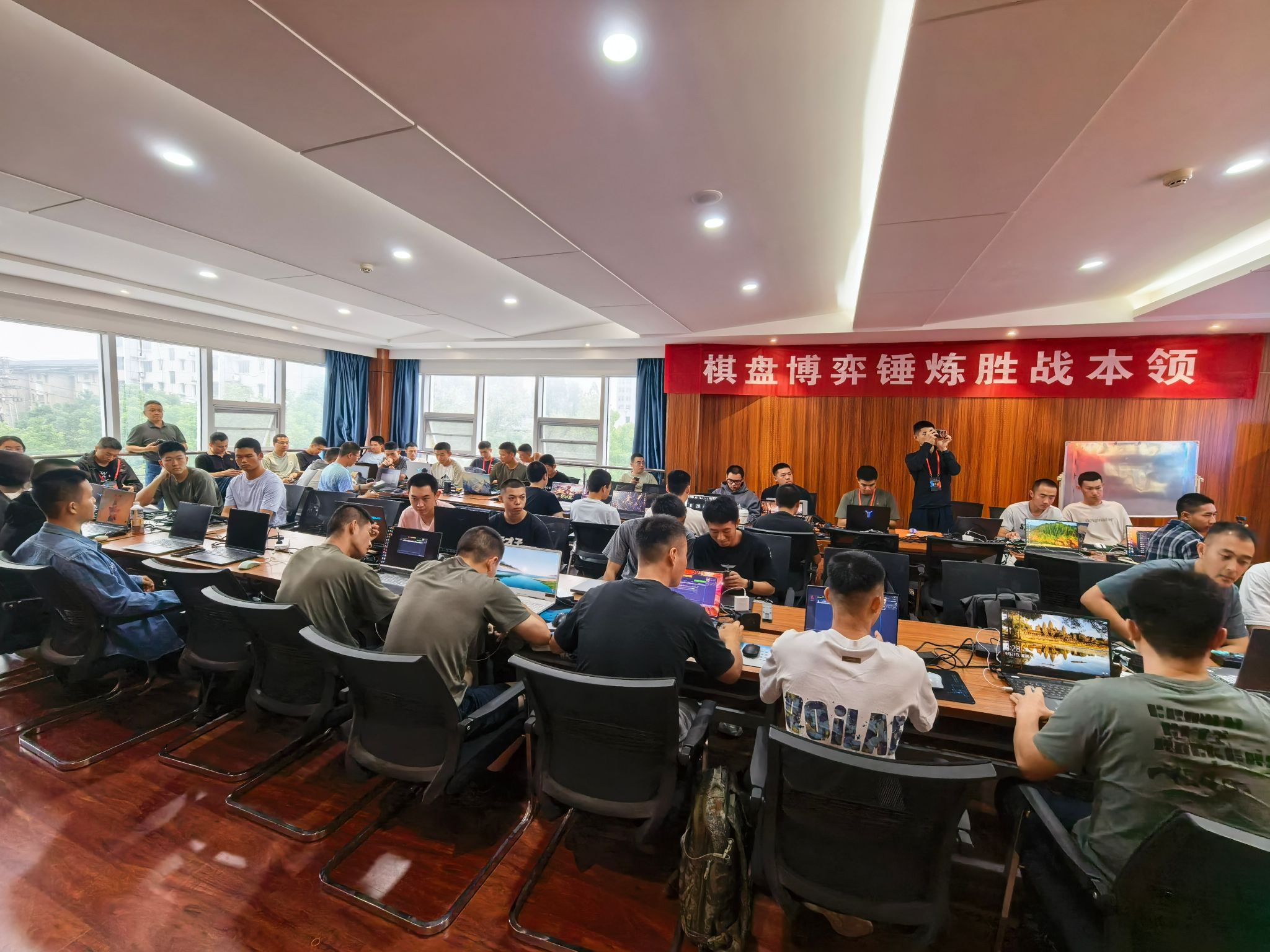 不同于传统推演模式,本次总决赛采用“两轮制”对局规则,每轮时长为50分钟,将“战术准备”与“实战对抗”的节奏压缩,更加考验选手的快速研判能力。比赛时,电脑屏幕上的“作战沙盘”中,红蓝双方的兵力标识不断移动。参赛选手两人一组,指尖在键盘与鼠标间快速切换,化身“战场指挥官”。