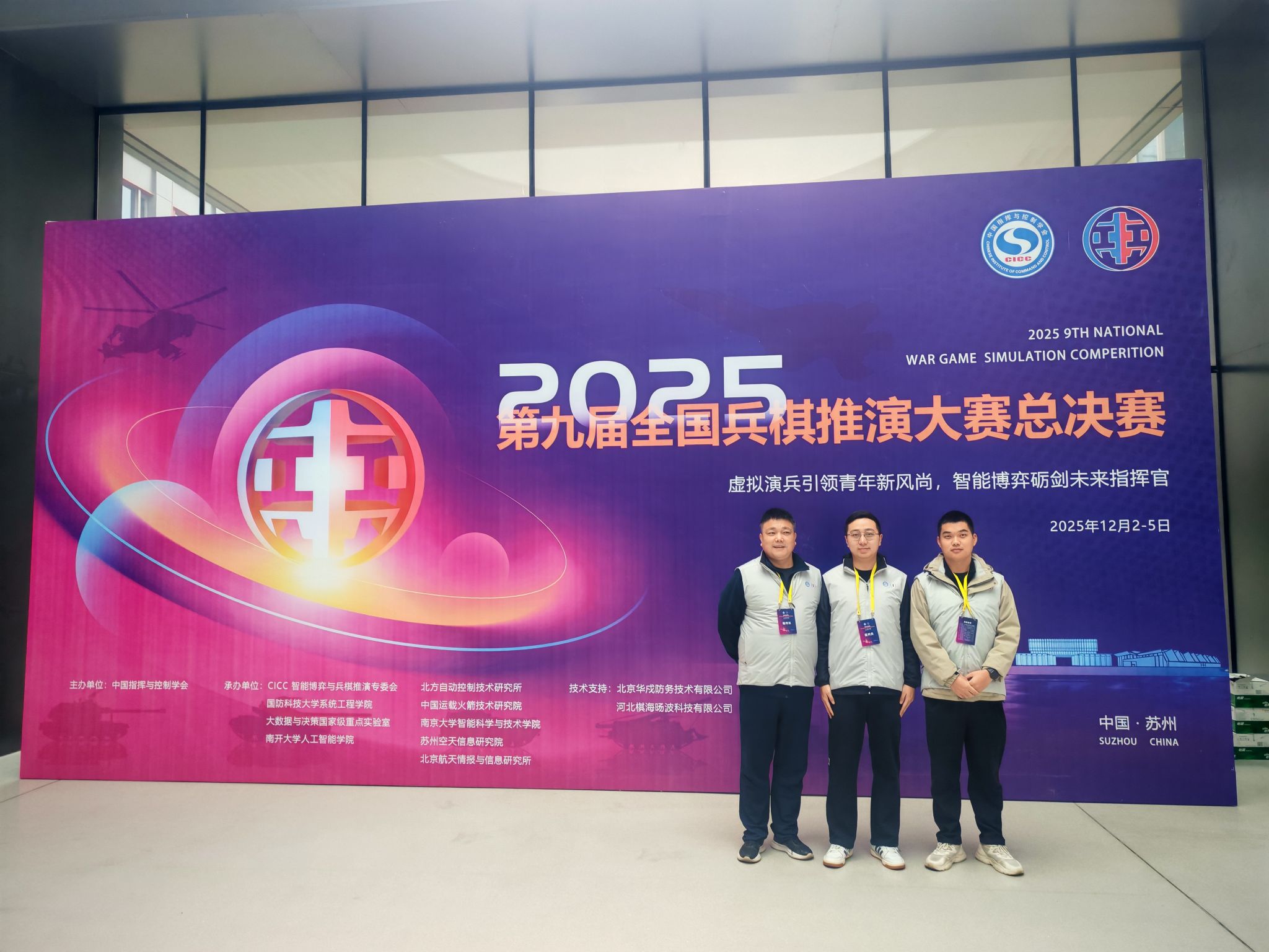 地大新闻网讯 (通讯员 陈公兵)日前,由中国指挥与控制学会主办的第九届全国兵棋推演大赛总决赛在苏州收官。由我校机械与电子信息学院本科生樊士豪、陆梓萌组成的队伍沉着应战,以精妙的战术破局,斩获国赛三等奖,实现我校在该赛事中的历史性突破。我校朱红巍教授任大赛裁判长,我校硕士生陈公兵、申朝冉担任大赛裁判员,以专业执裁护航赛事。