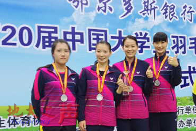 (通讯员刘锐)8月11日,第20届中国大学生羽毛球锦标赛闭幕式举行,我校羽毛球队获得女子乙A组团体亚军、女双亚军、男单第5名及男子团体甲B第八名的好成绩。