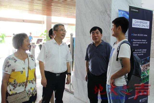 (记者徐燕 摄影张玉贤)9月2日,校领导带队开展新学期校园检查,重点检查开学准备工作,全面排查校园安全隐患,确保新学期学校各项工作安全有序进行。在校校领导郝翔、王焰新、朱勤文、傅安洲、成金华、唐辉明、赖旭龙、万清祥,校长助理刘杰,相关部门负责人参加检查。 校领导一行实地检查了教三楼、南望山庄西侧围墙、新峰公寓A栋新生宿舍、博物馆、图书馆、东区研究生八号楼新生宿舍、即将完工的游泳馆,以及在建的教学综合楼工地等,认真听取了相关部门负责人的介绍,进行了全面检查。 在图书馆,校领导一行巧遇一位来自孝感的经济管理学院新生及家长,校长王焰新关切地询问该新生的报到情况、有什么困难、对学校的印象等。该新生表示,已经初步参观了校园,对学校印象很好,将在这里用心读书,好好生活。