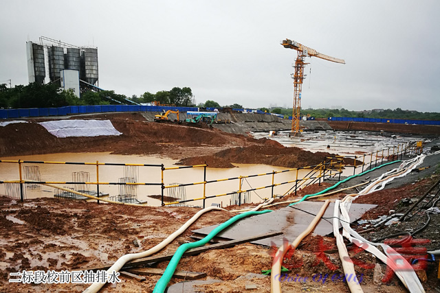 科学研判、提前部署。由于新校区工地地势较低,而且在开工建设之前长期作为当地的自然泄洪通道,加之连日降雨,造成了场内部分开挖区域积水。新校区汛期施工防洪抢险领导小组组长、副指挥长刘杰第一时间组织现场管理人员通报信息,并亲自带队巡查工地、排查隐患,对基坑、边坡、山体、塔吊、外脚手架、施工用电等重点部位和环节的防洪排涝及安全防范工作进行了提前部署,要求施工单位作好应急预案和相应的人员、物资准备。