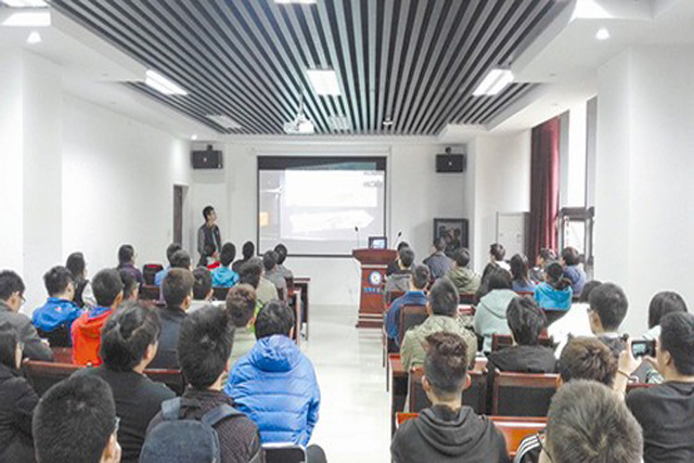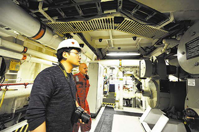 雷超“带领”着同学们参观钻井平台和各类研究实验室。