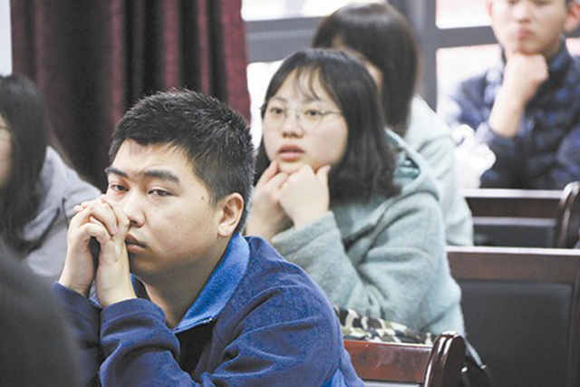 同学们聚精会神地观看视频。