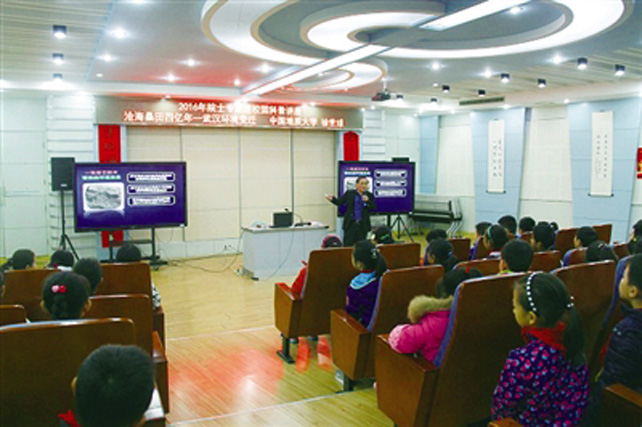 本报讯(通讯员 陈华 记者 陈映琦)11月9日,中国地质大学图书馆馆长徐世球到中华路小学为青少年做作科普报告:沧海桑田四亿年--武汉环境变迁。