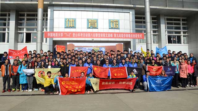 中国地质大学登山队举行“7+2”登山科考活动出征仪式。张玉贤摄