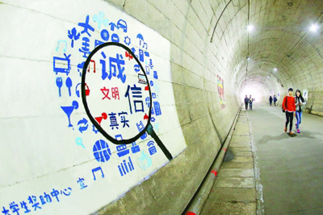 近日,记者在中国地质大学(武汉)连接北区与西区的隧道里看到,10余幅“壁画”让空旷的隧道显得不再“冰冷”。据了解,这是该校精心打造的中国首个高校文化隧道,师生在此涂鸦、习作等,演绎成为校园独特的文化风景。(记者石一 通讯员徐燕摄影报道)