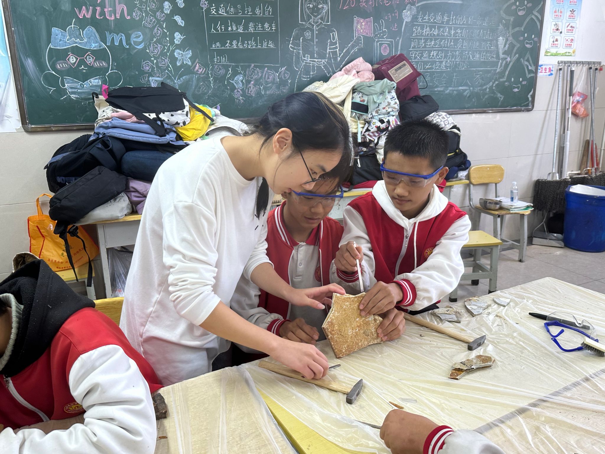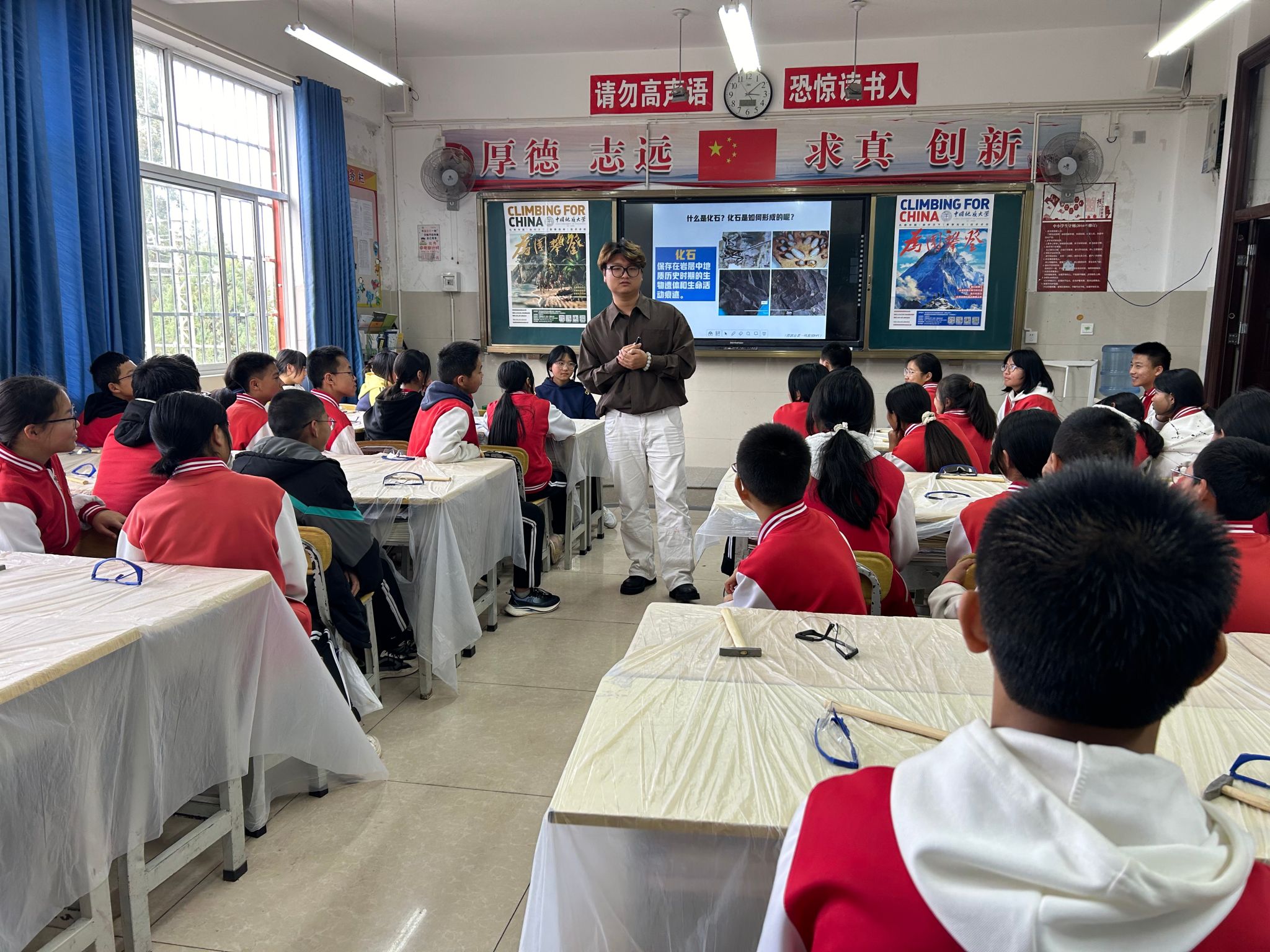 “地学之光”科学家精神宣讲团在宣讲课堂上开展化石修复体验活动