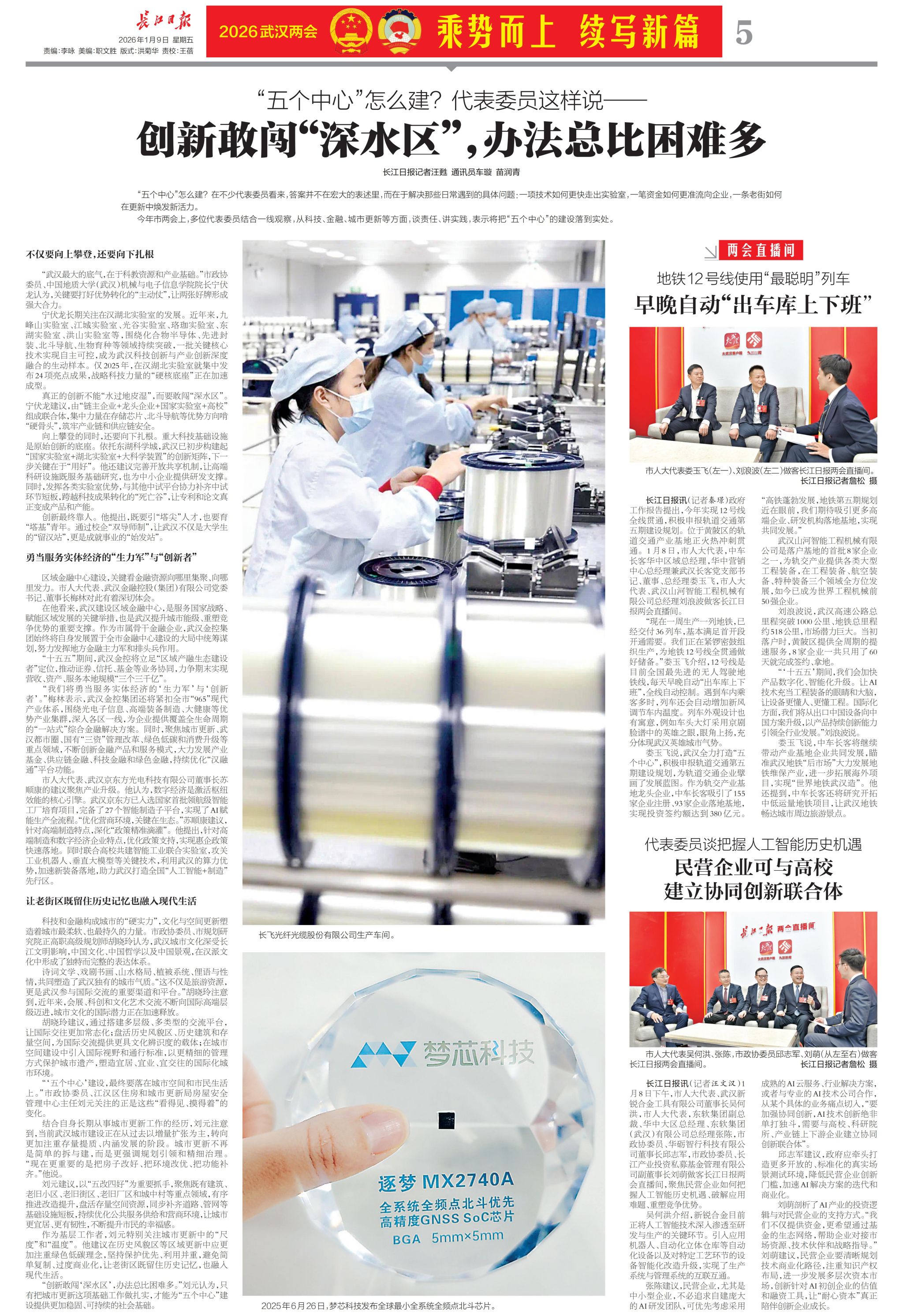 宁伏龙长期关注在汉湖北实验室的发展。近年来,九峰山实验室、江城实验室、光谷实验室、珞珈实验室、东湖实验室、洪山实验室等,围绕化合物半导体、先进封装、北斗导航、生物育种等领域持续突破,一批关键核心技术实现自主可控,成为武汉科技创新与产业创新深度融合的生动样本。仅2025年,在汉湖北实验室就集中发布24项亮点成果,战略科技力量的“硬核底座”正在加速成型。