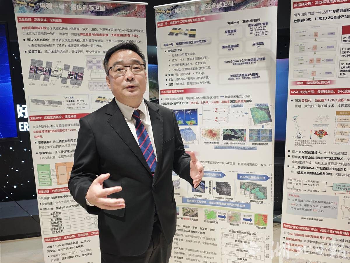 “‘电建一号’打造高精度传感器,搭建通信链路,配套地面处理系统和服务产品,通过低轨X波段干涉雷达技术,可识别毫米级的微小位移,全天时、全天候、大范围、高精度获取地表形变信息,补齐了现有监测手段的短板。”卫星工程总师王力哲教授介绍,卫星平台监测地面主要通过X波段和C波段,X波段波长较短,穿透能力弱、空间分辨率高,适用于工程检测,C波段波长较长,空间分辨率低、穿透能力强,更适用于地质灾害监测,通过多频段卫星融合,可实现重大工程、地质灾害的联合监测。