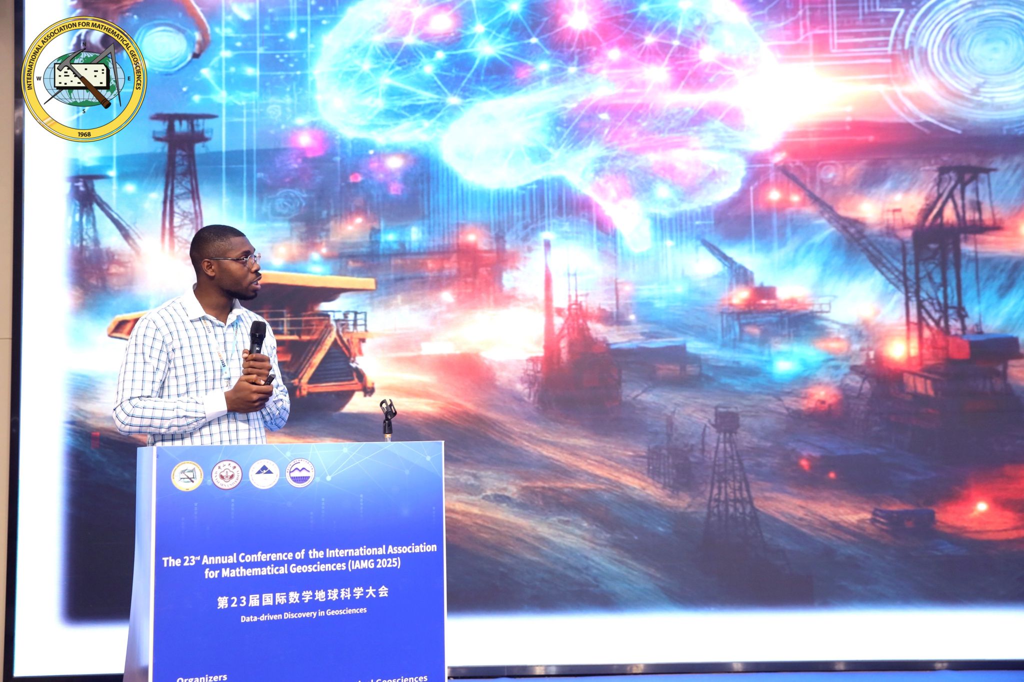 夸梅在导师陈建国教授的指导下,完成了题为《GEODATA FUSION AND MINERAL RESOURCES APPLICATION: A CASE STUDY FROM FANKOU Pb-Zn DEPOSIT》的学术报告。他的研究则侧重于实际地质数据的集成与应用。
