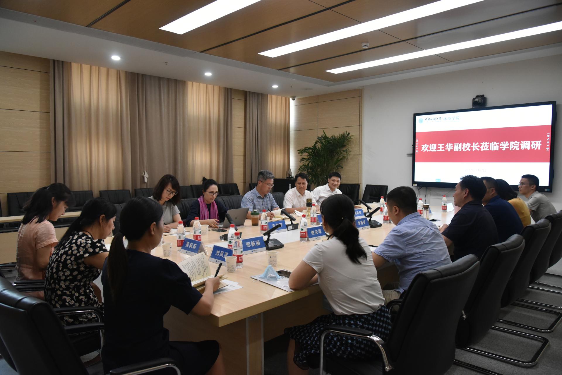 在地理与信息工程学院,王华与学院班子成员、系(中心、办公室)负责人以及教师代表座谈,听取了学院副院长宋小青以《未来启航教育为本》为题的本科教育教学工作汇报,与学院教师代表进行了深入交流,听取学院教师意见和发展需求,回应教师关切,并从专业建设校内评估和本科人才培养方案修订等方面,提出工作期望,强调在专业建设和人才培养工作中要与时俱进,加强一流课程和教材体系建设。