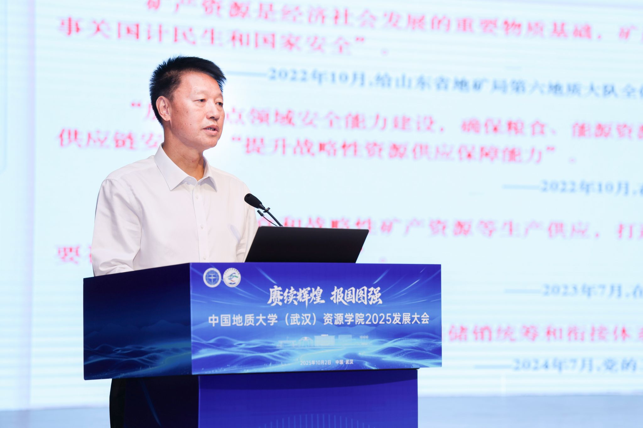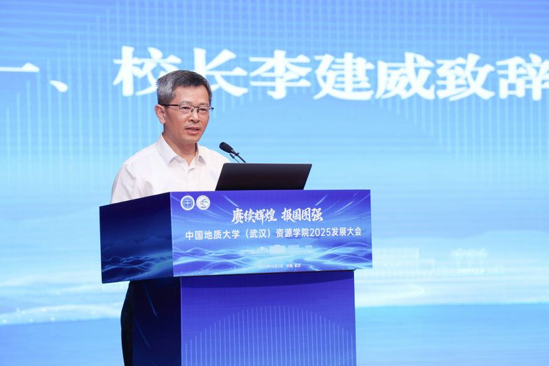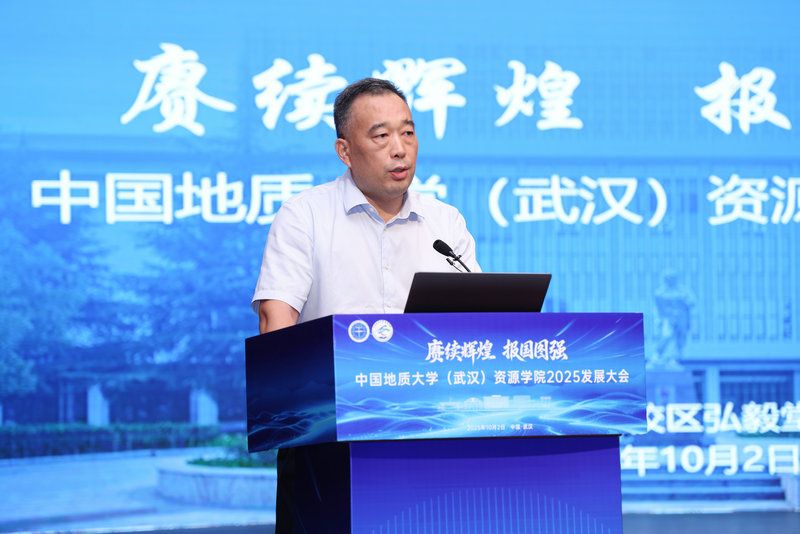 李建威致辞。他指出,资源学院的发展历史,就是一部与党同心与国同进、为党育人为国育才的光荣历史,为国家培养了以17位两院院士为杰出代表的2万余名各类高级专门人才。在长期的办学实践中,资源学院始终勇于探索,追求卓越,为国家资源能源开发与安全提供了重要理论和技术支撑,为学校的学科专业建设做出了重大贡献,为学校建设地球科学领域世界一流大学奠定了坚实基础。他希望,资源学院要坚持立德树人,着力提升拔尖创新人才自主培养质量;要强化使命担当,扎实推进世界一流学科建设;要追求学术卓越,勇攀科学高峰,在服务国家重大需求中彰显担当作为。