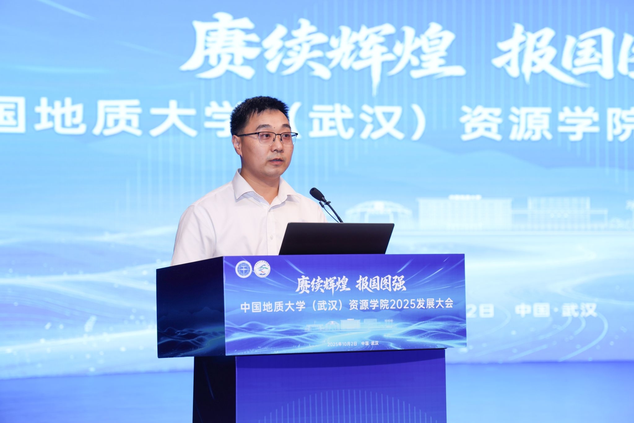 资源学院院长朱红涛作学院发展报告。他回顾了学院的发展历程,详细介绍了学院在人才培养、师资与人才队伍建设、科学研究与有组织科研、社会服务、国际交流与合作、平台建设等方面取得的突破和进展。他谈到,面对新形势、新挑战,资源学院将实施“三步走”发展战略,奋力开启建设资源能源领域世界一流研究型学院的新征程,以一流的成绩和扎实的行动回答好“教育强国、地大何为、资源有为”的时代命题。