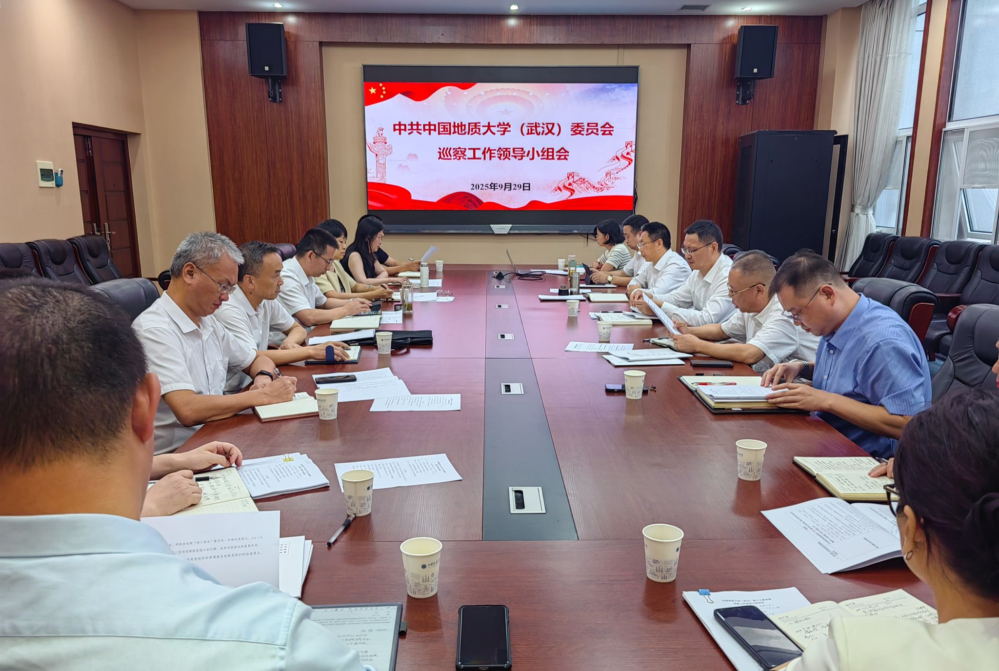 地大新闻网讯(通讯员 李平 摄影 霍少孟)近日,我校召开党委巡察工作领导小组会议。党委巡察工作领导小组成员、第二轮常规巡察第一巡察组组长、第三轮常规巡察组组长、副组长以及巡察办全体人员参加。