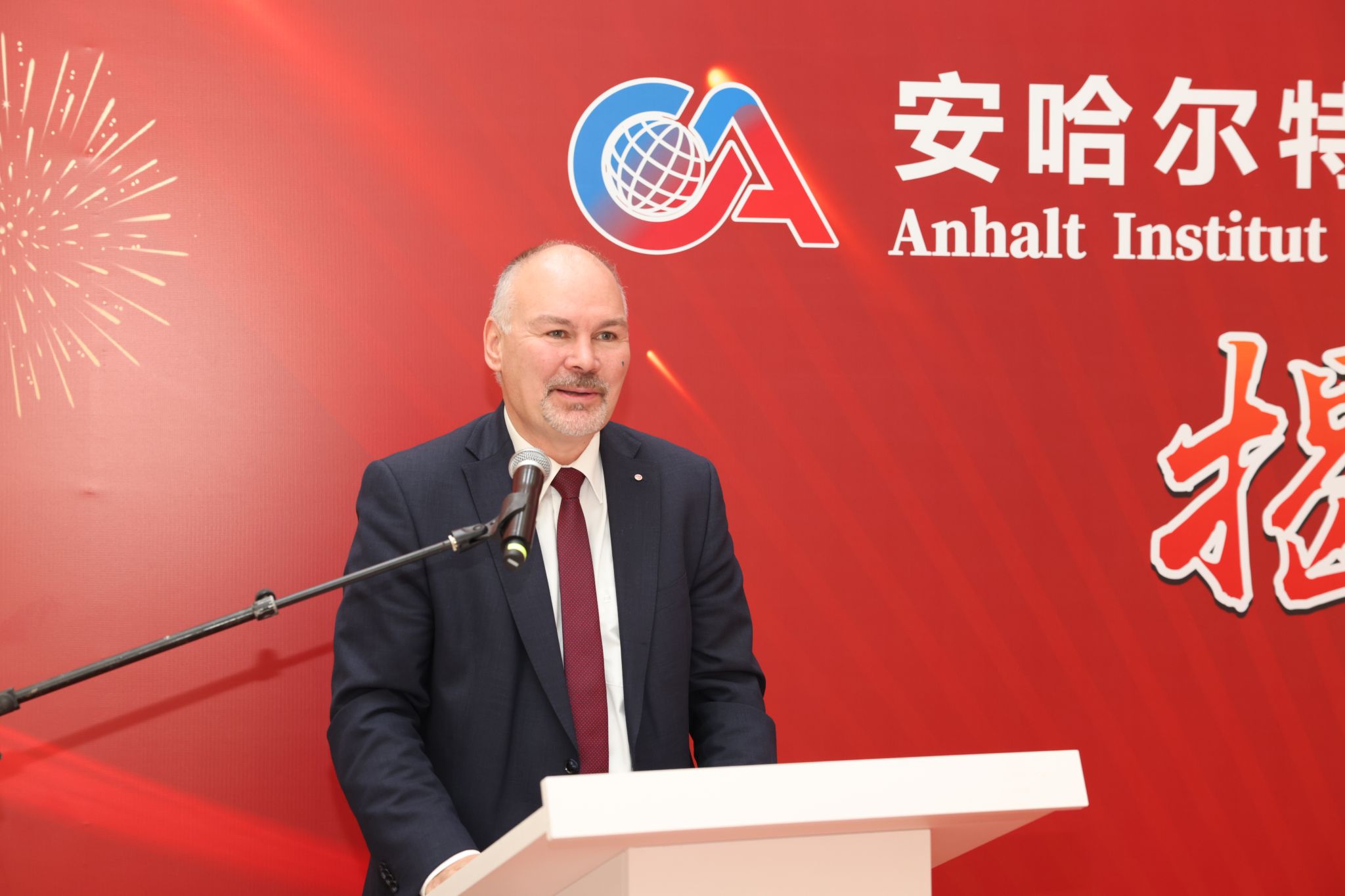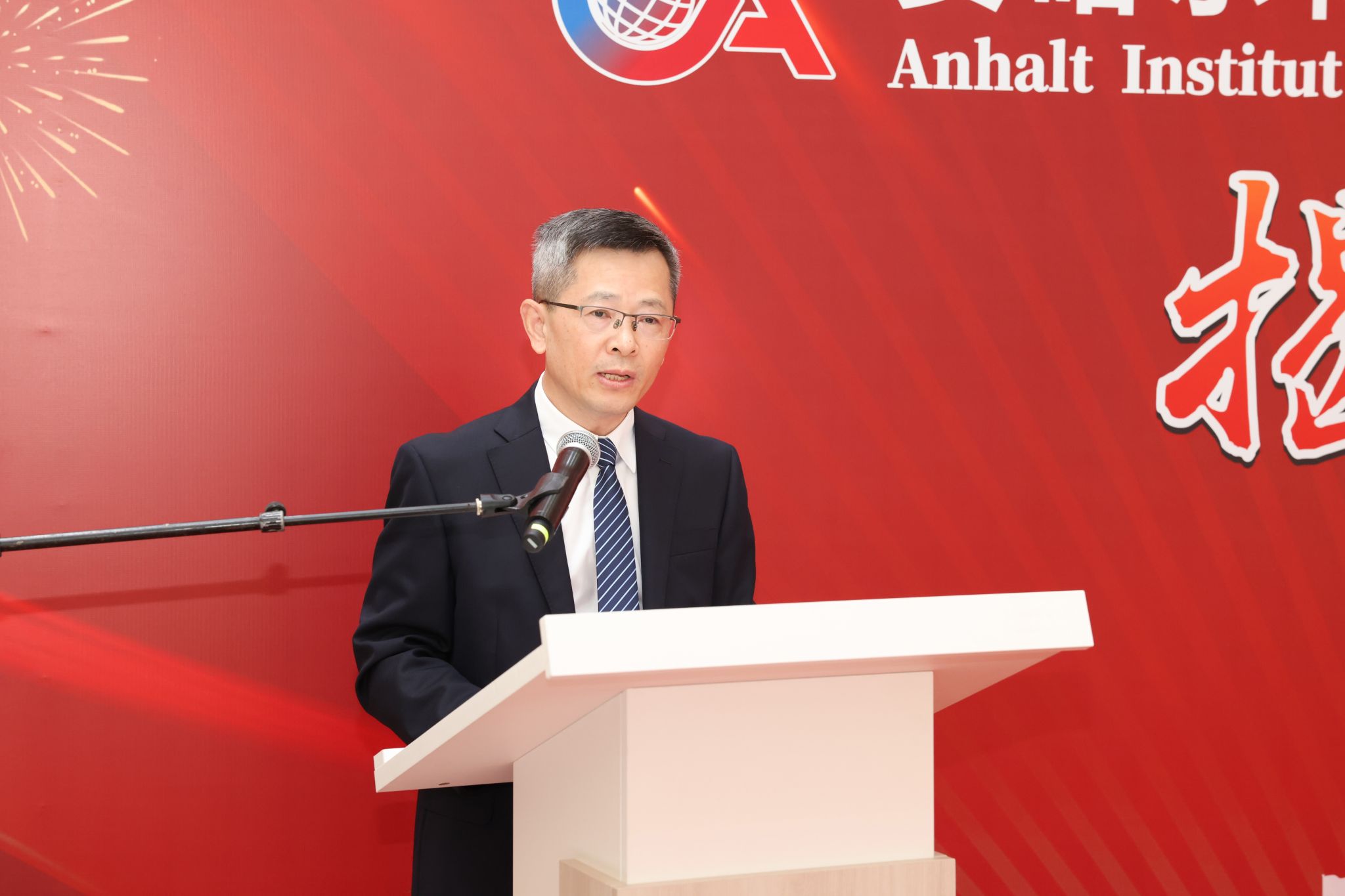 安哈尔特应用技术大学校长约尔格·巴格丹,副校长、中德学院德方常务副院长路塔·库巴斯,我校党委书记刘杰,校长李建威,副校长、中德学院院长夏帆及相关单位负责人参加仪式。夏帆主持仪式。