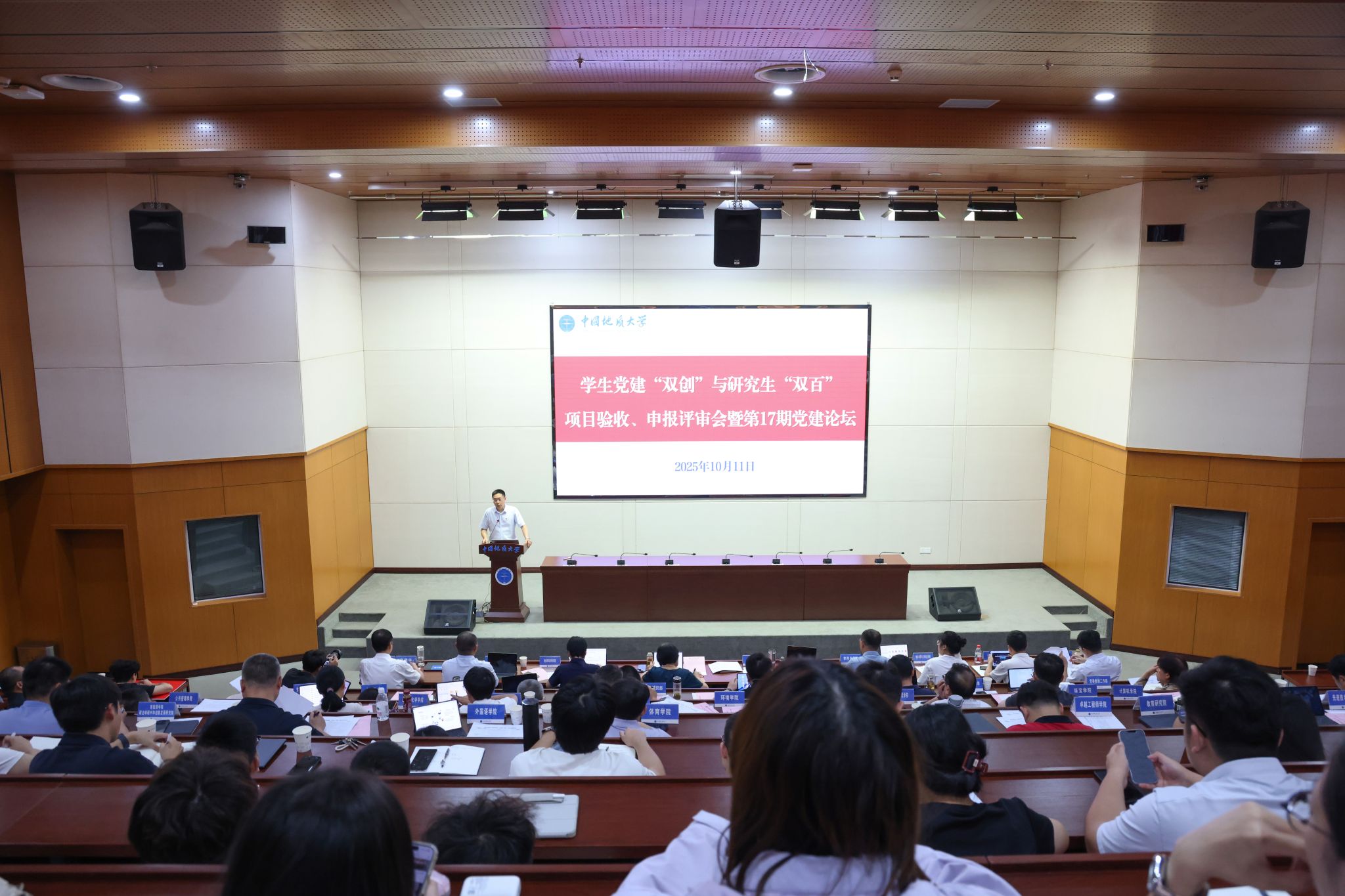 会议对第二批校级“样板党支部”和研究生“双百”项目进行了验收评审,并对申报第三批校级及新一批全国、全省“样板党支部”、研究生“双百”项目进行申报推荐评审。地球科学学院池际尚党支部等8个研究生党支部和李四光学院本科生党支部等3个本科生党支部围绕支部建设、党员作用发挥、党建与科研融合等方面进行了汇报交流。资源学院高旭东等6名研究生党员标兵代表结合自身成长经历和党建工作实践,分享了在科研创新、服务师生、模范引领等方面的体会与成果。
