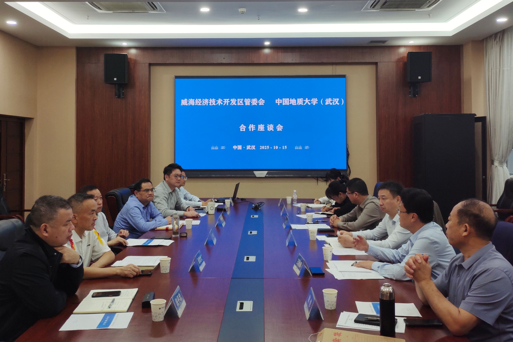 地大新闻网讯(通讯员 梅振宇)10月15日,我校与威海经济技术开发区管委会合作座谈会举行。威海经开区党工委委员、管委副主任彭冠军,威海智慧谷投资运营有限公司董事长、总经理王利辉,我校党委副书记王林清及双方相关单位负责人参加会议。
