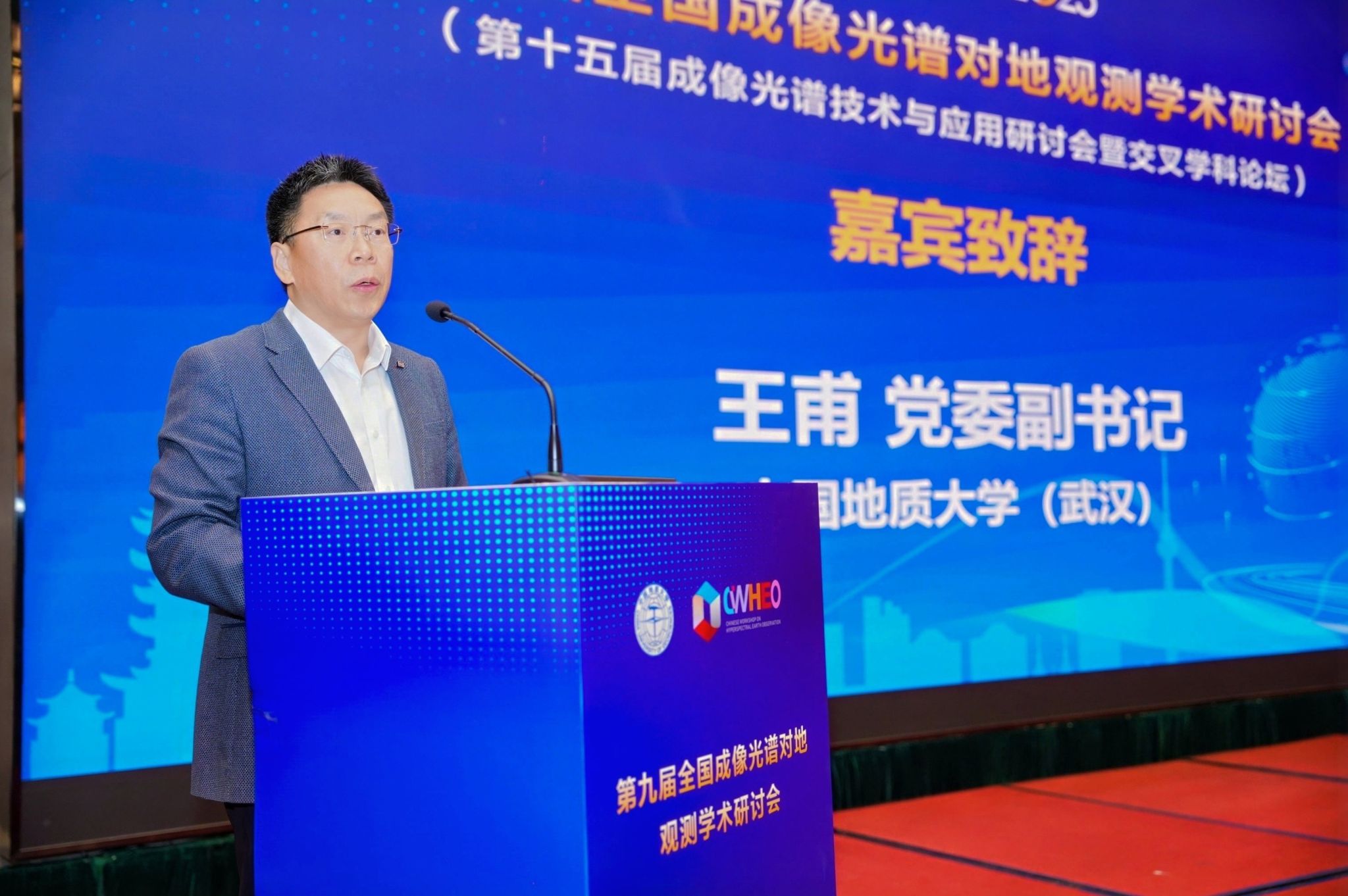 王甫表示,我校历来高度重视遥感科学与信息技术的发展,长期致力于光谱遥感机理、智能信息处理、地质与生态环境应用等方面的研究,持续推动信息科学与地球科学的深度融合。他希望通过这次学术交流,与兄弟院校、科研院所、企业界携手,共同推动成像光谱技术的创新发展,为国家资源安全、生态文明建设和可持续发展贡献智慧与力量。