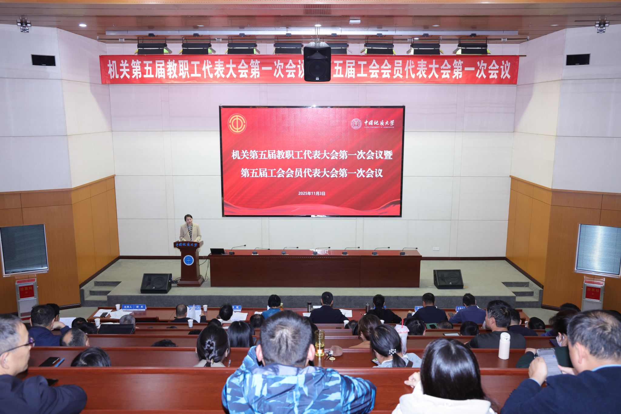 地大新闻网讯(通讯员 姜力维 宋超 摄影 孙颖)11月3日,机关第五届教职工代表大会第一次会议暨第五届工会会员代表大会第一次会议召开。校党委副书记、工会主席王甫,党委常委、机关党委书记陈文武,机关党委委员、纪委委员,机关工会委员、工会小组长,各单位教职工代表参加会议,数理学院分工会主席王希成、后勤分工会主席左涵之列席会议。党委组织部副部长、机关党委副书记胡肖主持会议。