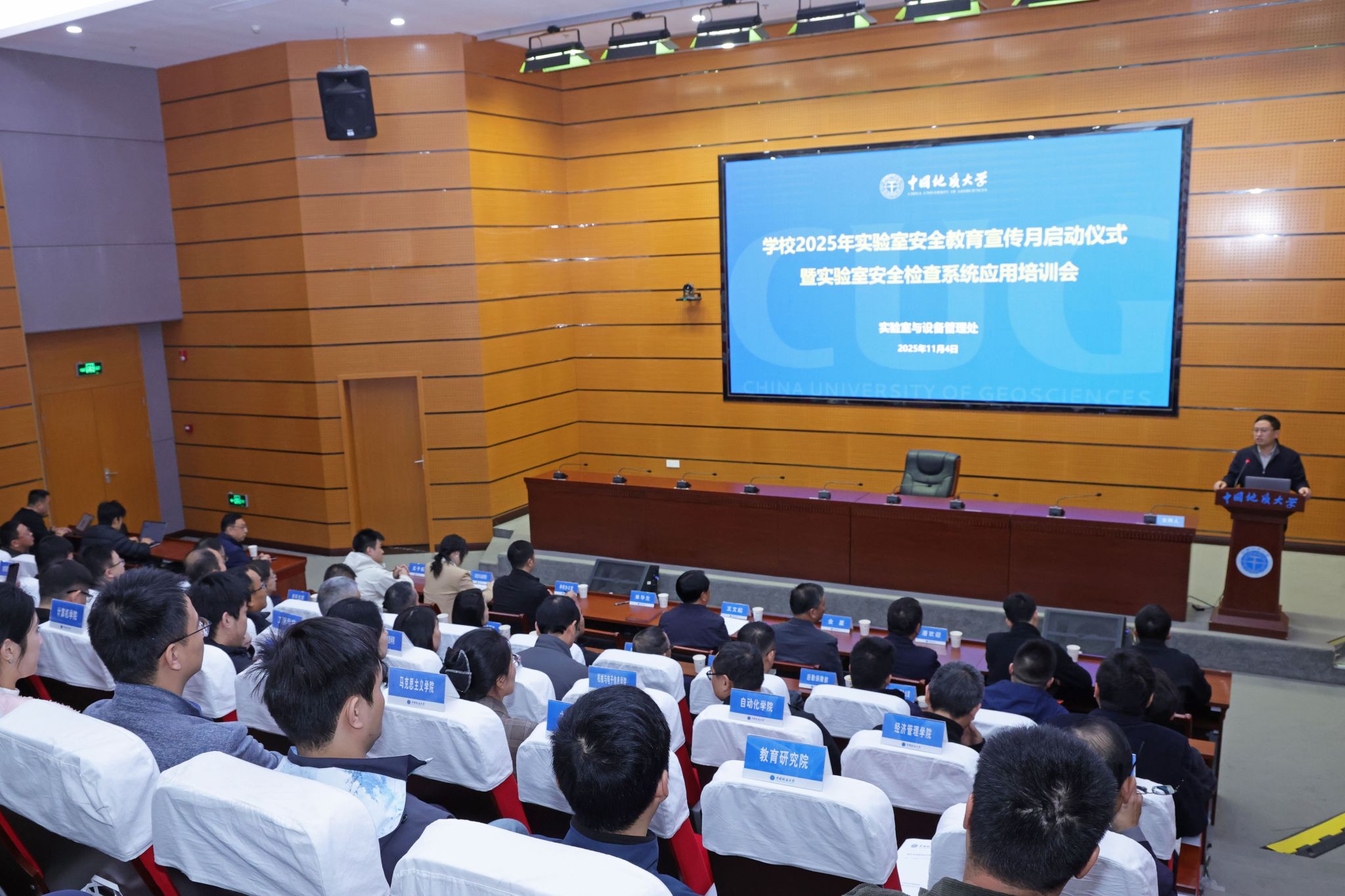 地大新闻网讯 (通讯员 牛玉光 郭柏辰 摄影 孙彦钦 葛皓月)11月4日,2025年实验室安全教育宣传月启动仪式在校举行。副校长王文起,校实验室安全工作领导小组成员单位负责人,实验室安全督查专家,各教学科研单位负责人、实验室安全管理人员、实验技术人员及地心守护社团成员等参加活动。实验室与设备管理处处长单华生主持活动。