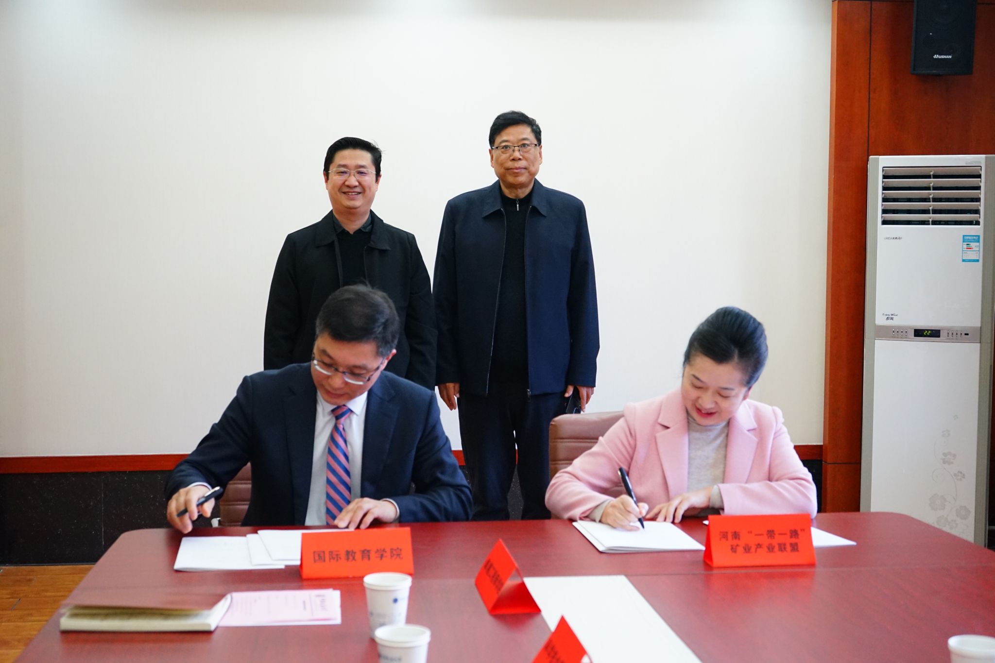 河南省地质局境外地质工作处处长、联盟秘书长张新红,我校国际教育学院党总支书记许峰,代表双方签署战略合作协议。