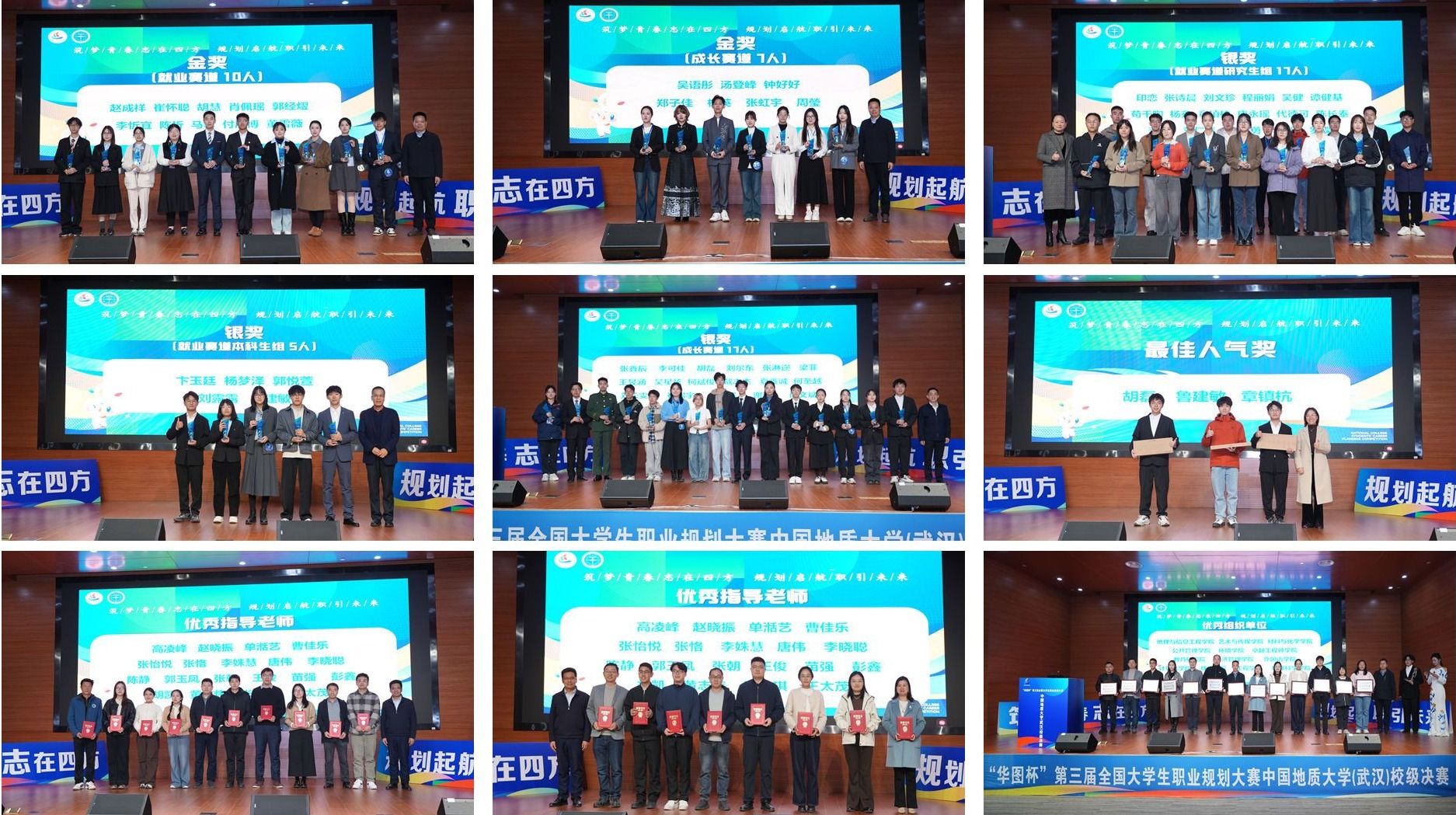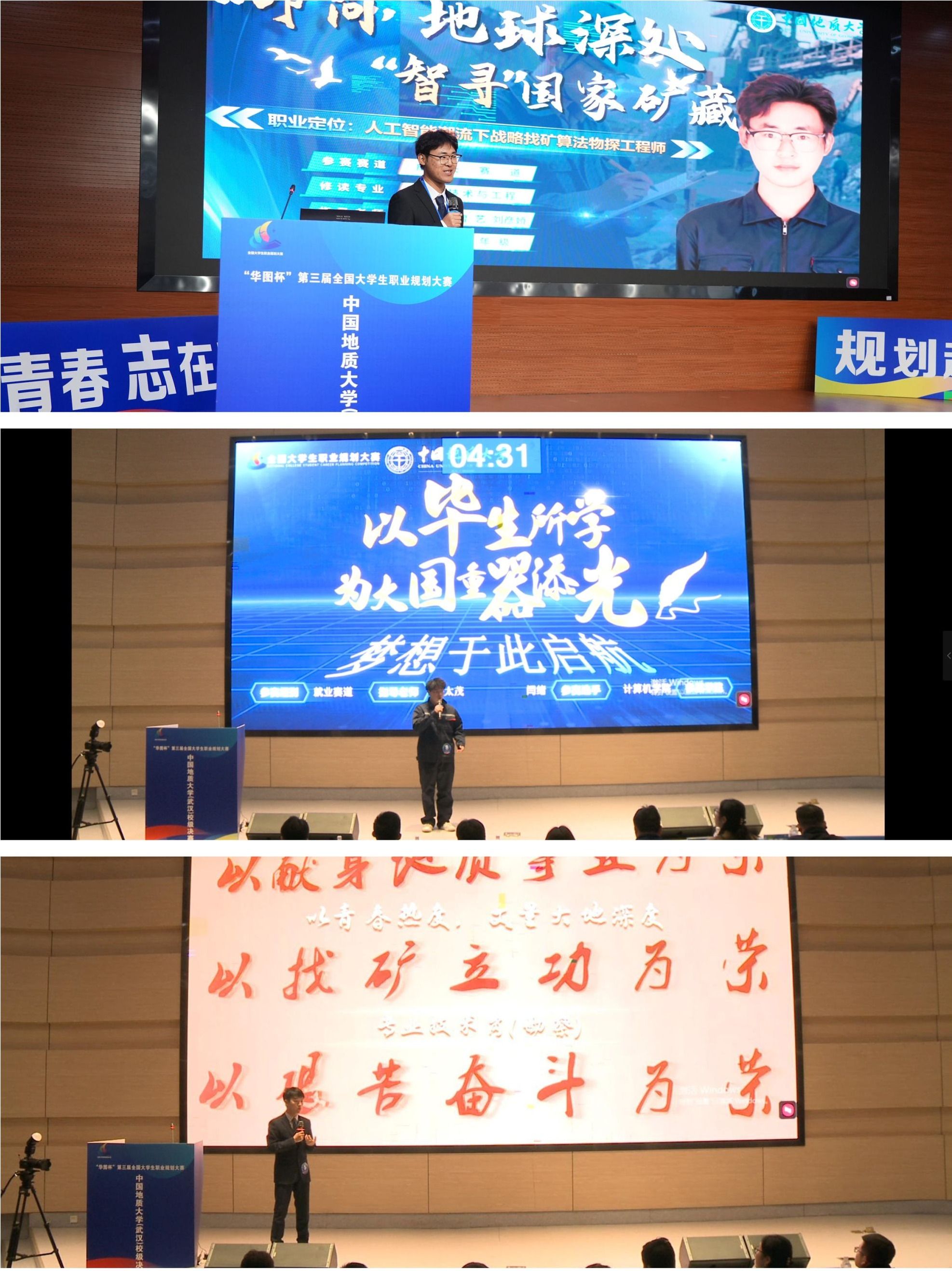 决赛现场,选手们将个人职业目标融入国家发展需求,分析自身与职业目标的差距,制定合理的阶段性职业规划,展现了地大学子扎实的专业积淀与昂扬的青春风采。经过角逐,最终20位选手获校赛金奖,39位选手获校赛银奖,20位教师获优秀指导教师奖,13个培养单位获优秀组织单位奖,3位选手经现场观众投票获最佳人气奖。