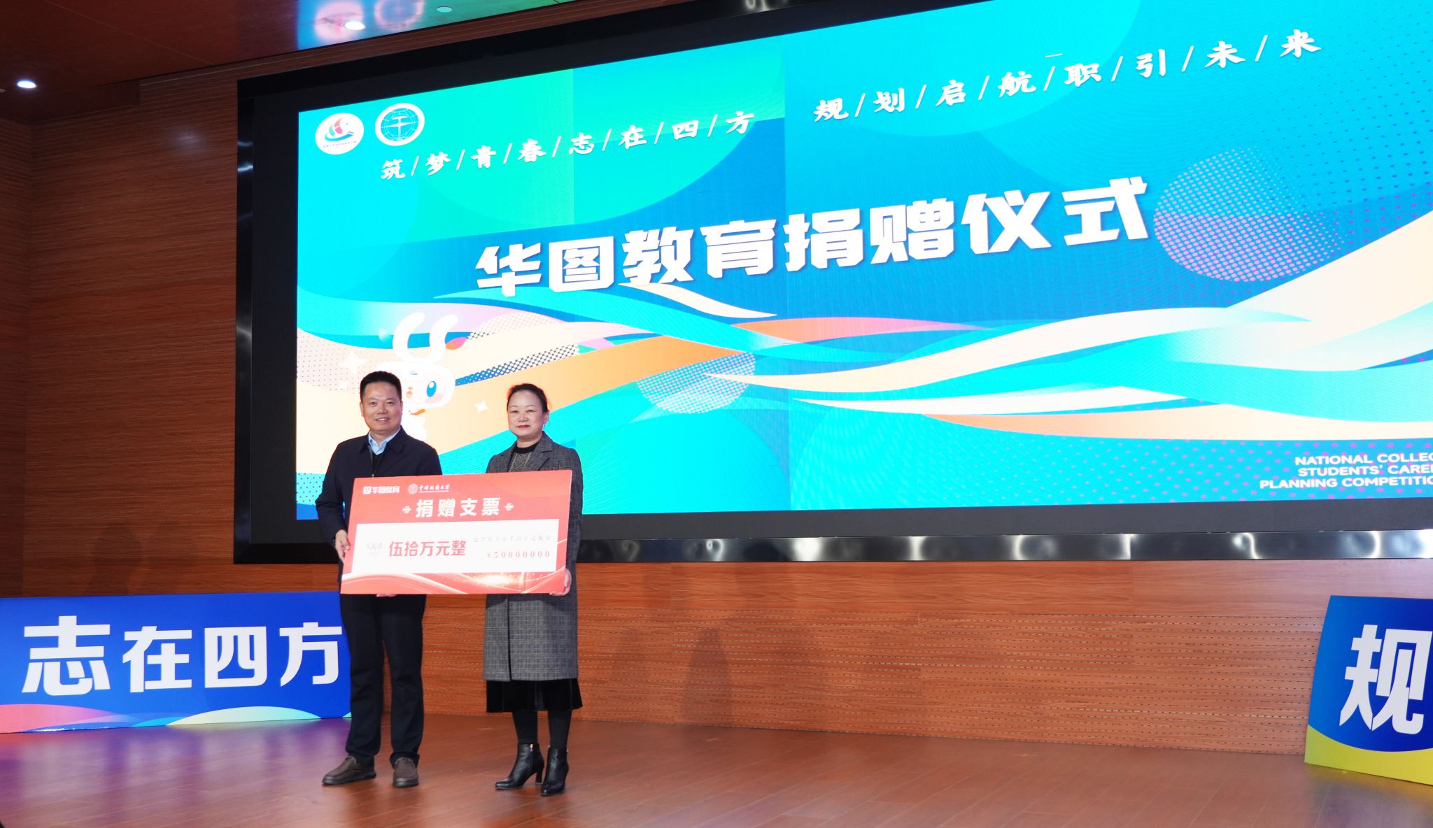华图教育湖北分校校长余福桃代表华图教育向学校捐赠50万元。