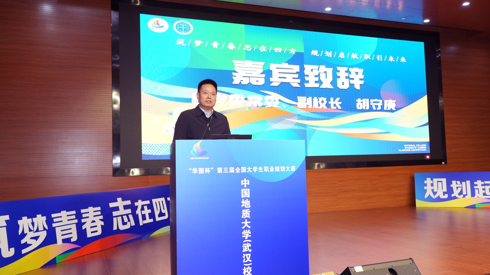地大新闻网讯(通讯员 聂锴凝 周延菲)11月30日,“华图杯”第三届全国大学生职业规划大赛中国地质大学(武汉)校级决赛在未来城校区举办。本次比赛由学校大赛组委会主办,地理与信息工程学院、未来城校区管理办公室承办,主题为“筑梦青春志在四方,规划启航职引未来”。副校长胡守庚,省高校毕业生就业指导中心相关领导老师,本科生院、研究生院、学生就业指导处、团委、未来城校区管理办公室等部门负责人、各培养单位学生工作负责人,参赛选手指导教师,各界专家评委参加本次活动。