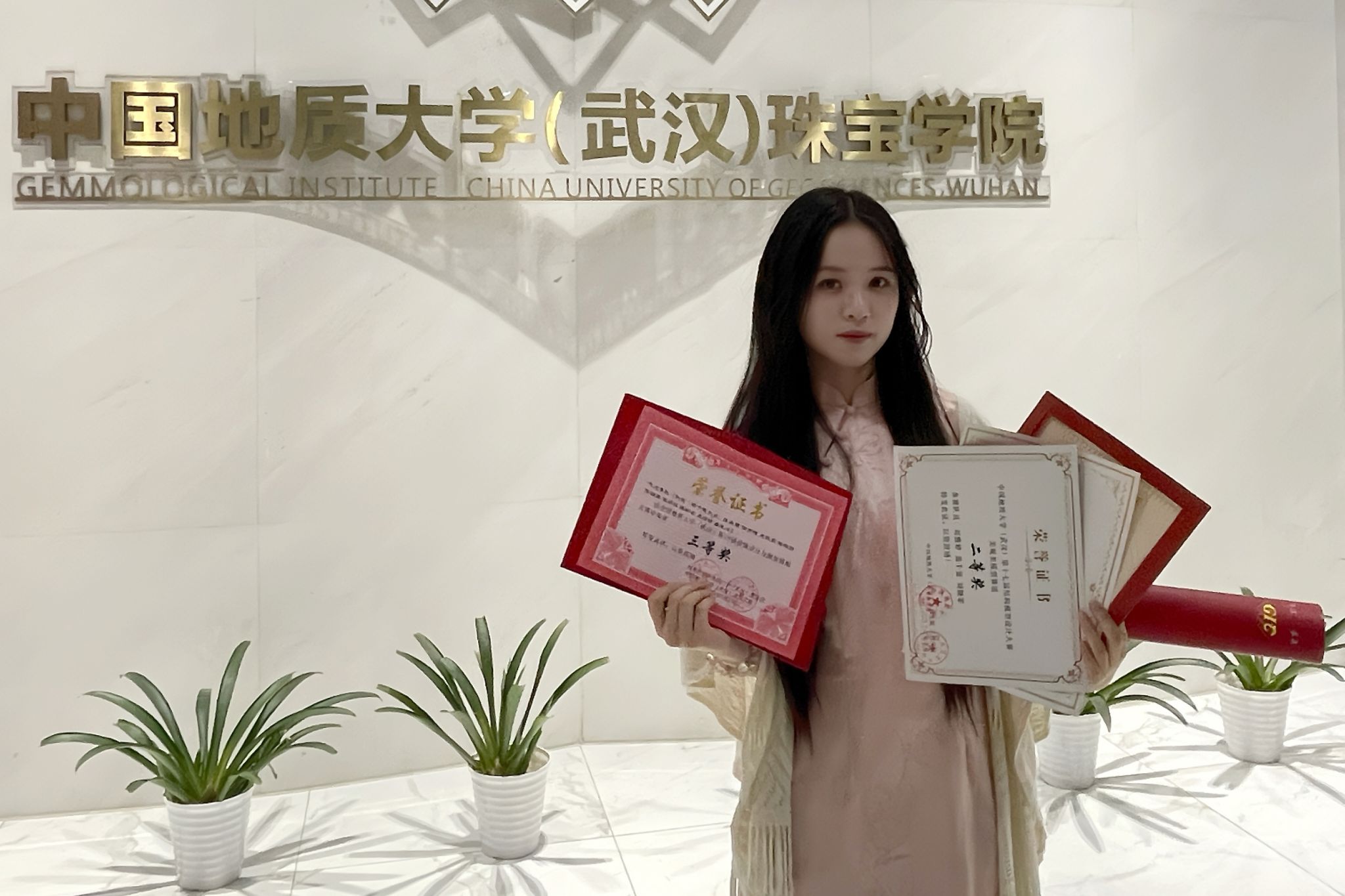 翁千斐,珠宝学院,产品设计专业,2023级本科生,武汉市翁不倒珠宝首饰有限公司创始人。直播电商珠宝,用内容点亮个人IP,做“珠宝科普”,用轻松有趣的方式解读珠宝热点,打造“差异化小众专业vlog”,记录一个珠宝学生的日常、设计过程,满足大众对珠宝专业的神秘感和好奇心,并建立真实感与信任度。已构建起从产品设计、自媒体运营到线上销售的全链路能力体系,希望打造具有影响力的新锐设计师珠宝品牌。