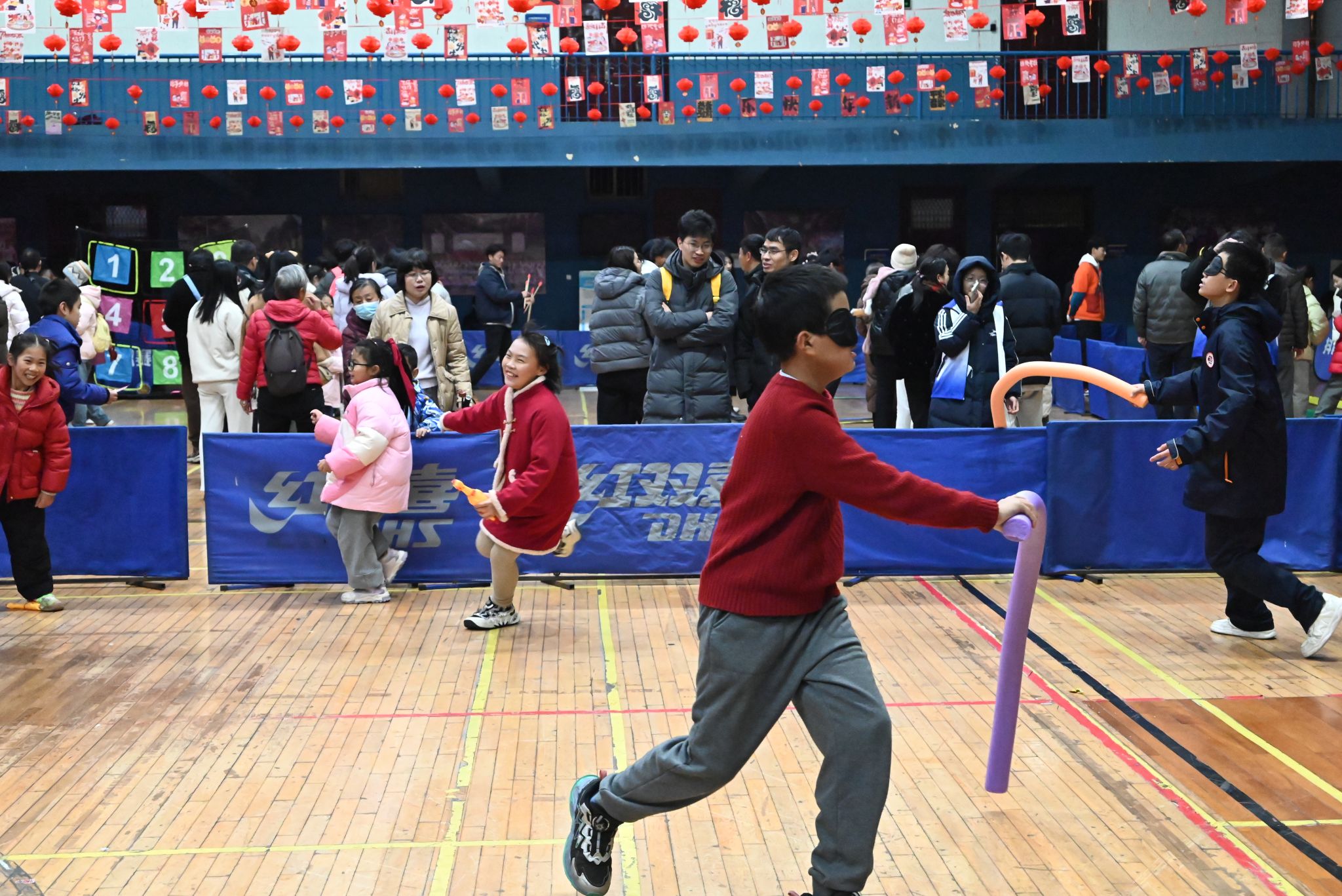 在南望山校区体育馆、未来城校区弘雅堂体育嘉年华现场,师生们自发组队、并肩闯关,蒙眼抓鸡的纯粹欢乐,击鼓颠球、福球接力的团队协作,桌面冰壶的精准博弈,还有投壶的优雅从容……赛场之上,师生同心协力;欢呼之中,凝聚团队朝气。现场还有攀岩、武术和瑜伽表演,精彩纷呈、活力满满。