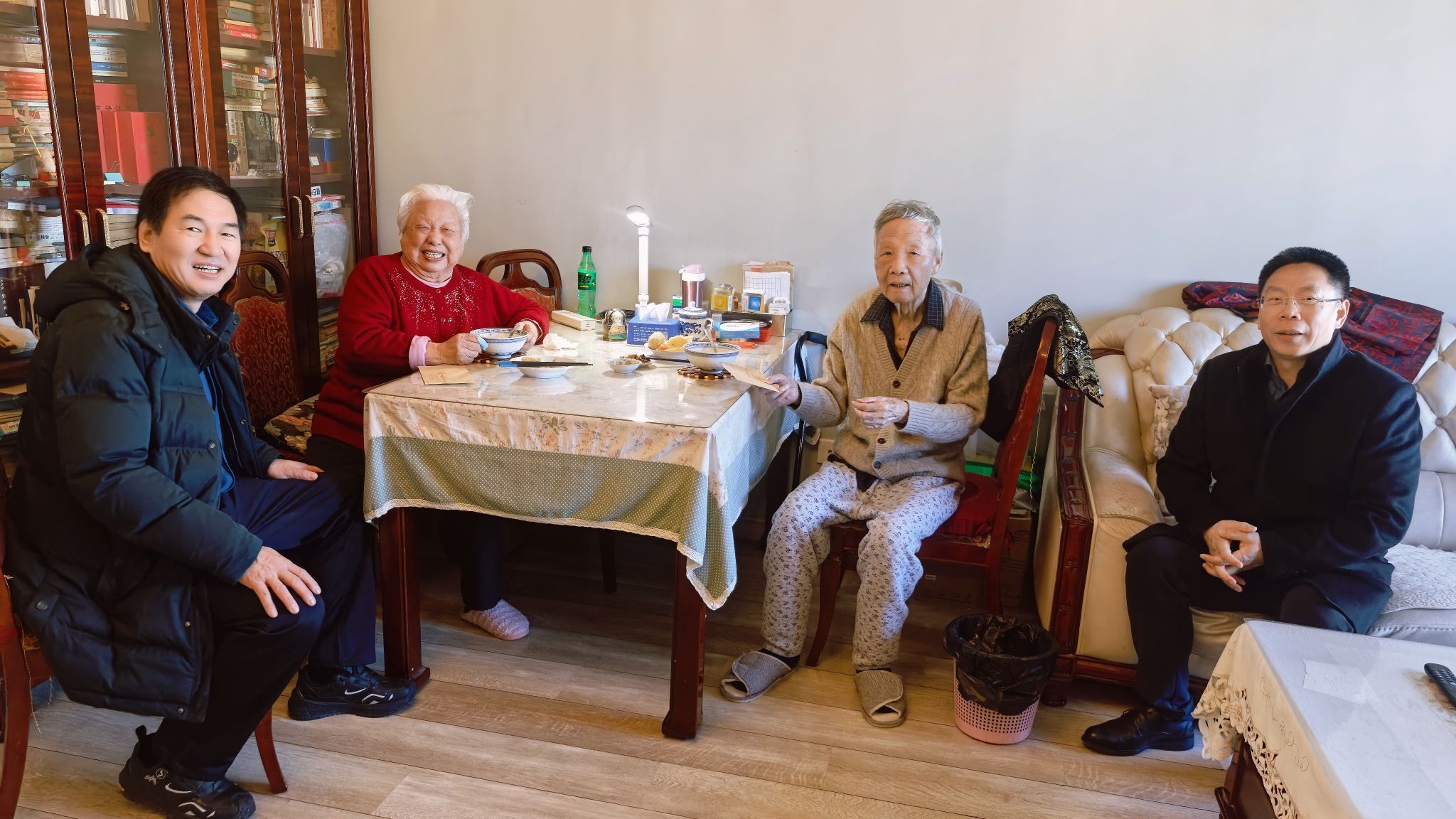 窗外寒风呼啸,室内却暖意融融。92岁高龄的陈崇希教授当场为大家演唱歌曲《我的太阳》。老同志们纷纷表示,在这天寒地冻的日子里,学校的挂念和慰问倍感温暖、深受感动。(编辑 孙彦钦 审稿 陈华文)