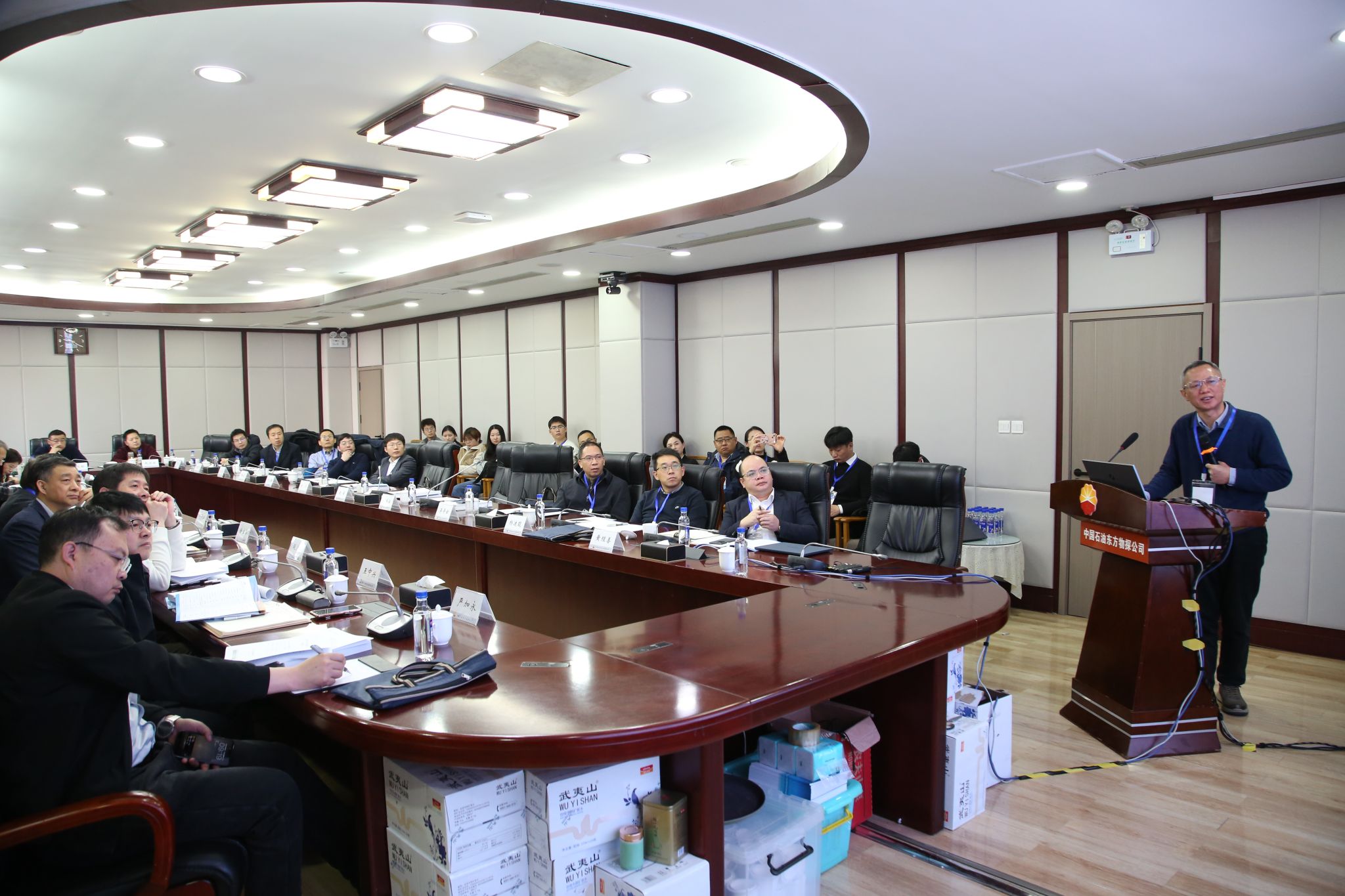 东方物探公司总地质师赵博致辞。他代表承办单位对各位院士、专家及项目组成员的到来表示热烈欢迎,并介绍了东方物探公司在装备研发与应用方面的基本情况,表示将全力支持项目在东方物探公司的各项测试与示范工作。