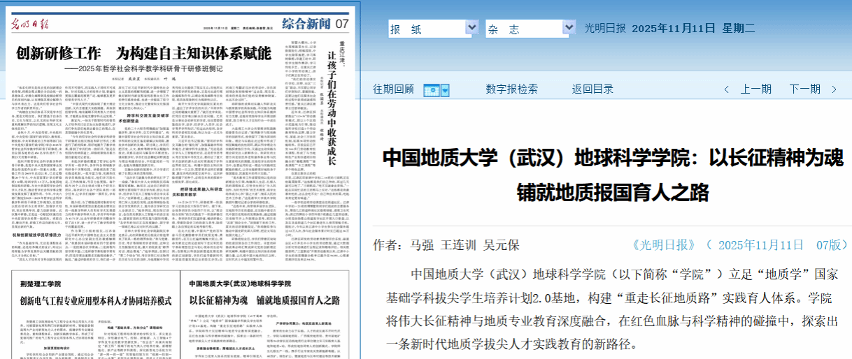 学院积极践行“以贡献求支持、以服务促发展”的理念,主动将学科优势、科研优势转化为服务经济社会发展的实际成效,展现了新时代地学工作者的家国情怀和责任担当。