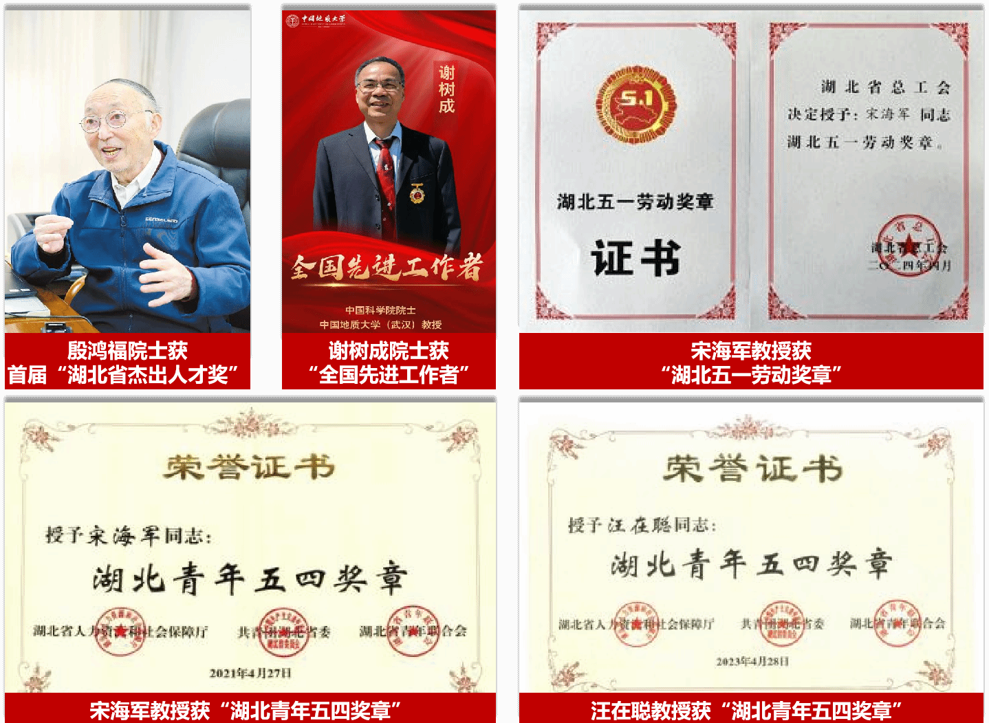 科技成果奖励与社会认可度高。学院科研成果获得多项高级别奖励,获国家科学技术进步奖二等奖1项(第二单位),以及湖北省自然科学奖、科技进步奖一等奖3项和二、三等奖各 2 项。谢树成院士荣获国际有机地球化学领域最高奖——阿尔弗雷德·特雷布斯奖(Alfred Treibs Award),这是中国科学家首次获得该奖项。宋海军教授先后获得“霍英东教育基金会青年科学奖”和“中国青年科技奖特别奖”。2人获“中国孙枢奖”,4 人获“侯德封奖”,1人获“腾冲青年科学家奖提名奖”等。这些奖项是对学院教师长期潜心研究、勇攀科学高峰的充分肯定。