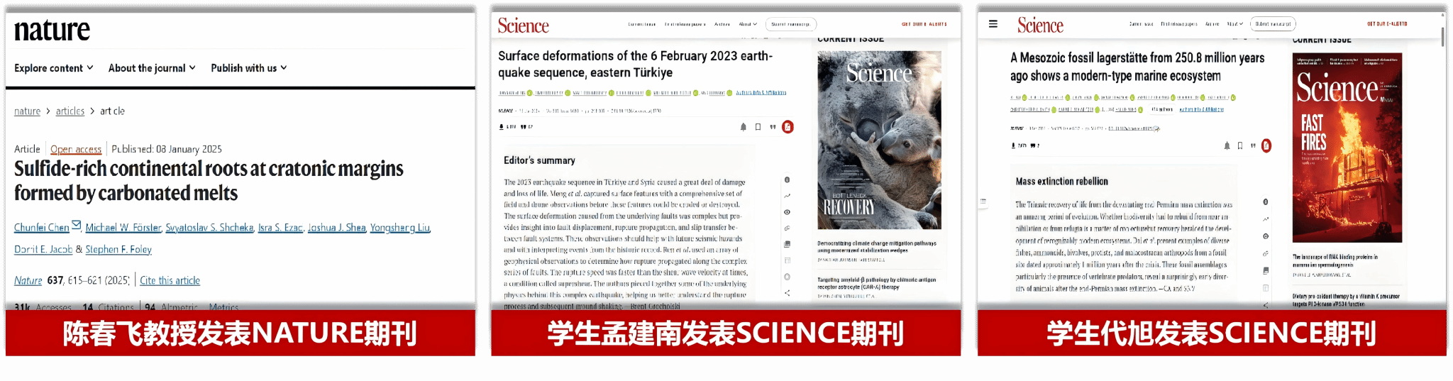师生科研成果先后登上《Nature》《Science》