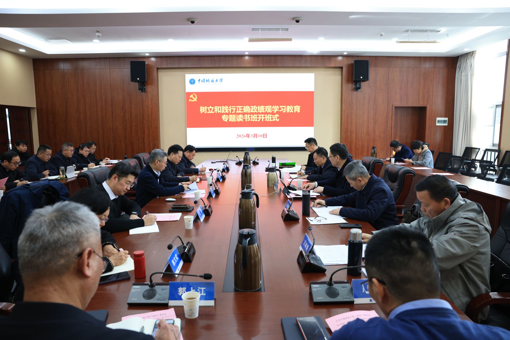 刘杰同志介绍了学校开展树立和践行正确政绩观学习教育的整体安排及专题读书班的工作部署,并对办好本次读书班提出明确要求。他强调,要深刻领会习近平总书记重要指示精神和党中央决策部署,准确把握此次学习教育的政治意义和实践要求,认认真真抓好此次树立和践行正确政绩观学习教育专题学习。一要带头深学细悟,在强化理论武装上作表率。要原原本本学、融会贯通悟,深刻领会习近平总书记关于树立和践行正确政绩观的重要论述,从根本上廓清“政绩为谁而树、树什么样的政绩、靠什么树政绩”的重大问题,筑牢坚定拥护“两个确立”、坚决做到“两个维护”的思想根基。二要深入研讨交流,在相互启发借鉴上求实效。紧密结合思想实际、分管领域与岗位职责,深入开展研讨,分享认识体会,交流思路举措,切实增强树立和践行正确权力观、政绩观、事业观的政治自觉、思想自觉、行动自觉。三要紧密联系实际,在推动事业发展上见真章。坚持学用结合、以学促干,将学习研讨与学校落实立德树人根本任务、服务国家重大战略需求紧密结合,与编制实施“十五五”规划、深化新一轮“双一流”建设等重点任务深度融合,切实把学习成果转化为推动学校事业内涵式高质量发展、增强师生获得感幸福感的具体行动和实际成效。