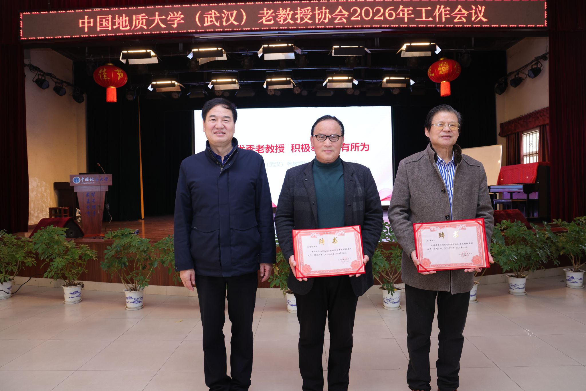 会议现场,离退休工作处处长张宽裕为宋斌教授、徐世球教授颁发了中国老教授协会的“美育专家”聘书,以及湖北省老教授协会的“老教授报告团成员”聘书。两位教授表示,将珍惜这份荣誉,充分发挥自身专业优势,积极投身美育事业和科普事业,为培养德智体美劳全面发展的社会主义建设者和接班人贡献力量。据悉,中国老教授协会于2025年8月启动“百师进百校美育工程”,组织百名资深教授和艺术家走进基层,开展美育大师课、名家讲座、名师工作坊等活动,推动银龄美育工作的创新发展。湖北省老教协共有11位教授受聘参与该工程,我校宋斌教授、徐世球教授入选。