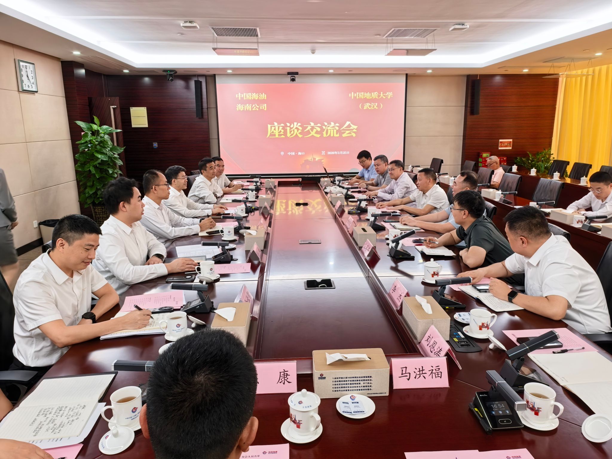 3月25日下午,王林清一行赴中海油海南分公司调研交流。中海油海南分公司党委书记、总经理姜平,副总经理、总工程师张辉及相关部门负责人参加座谈会。双方就推进战略合作协议落实,推动共同发展开展交流。