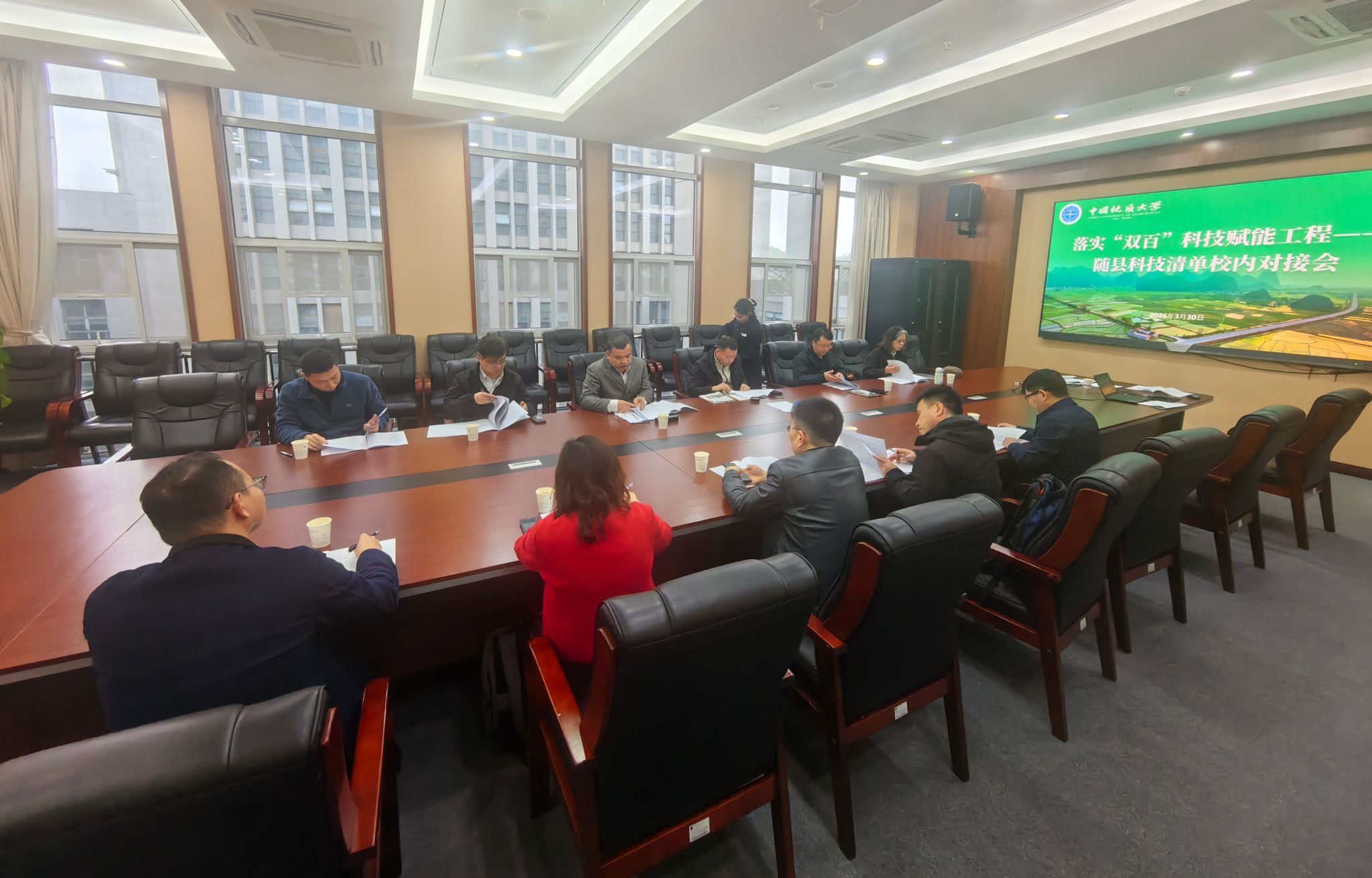 地大新闻网讯(通讯员 常虹)3月30日,我校在南望山校区召开随县科技清单校内对接会。校党委副书记王林清,科学技术发展院、校友与社会合作处,相关教学科研单位、科研团队负责人参会。