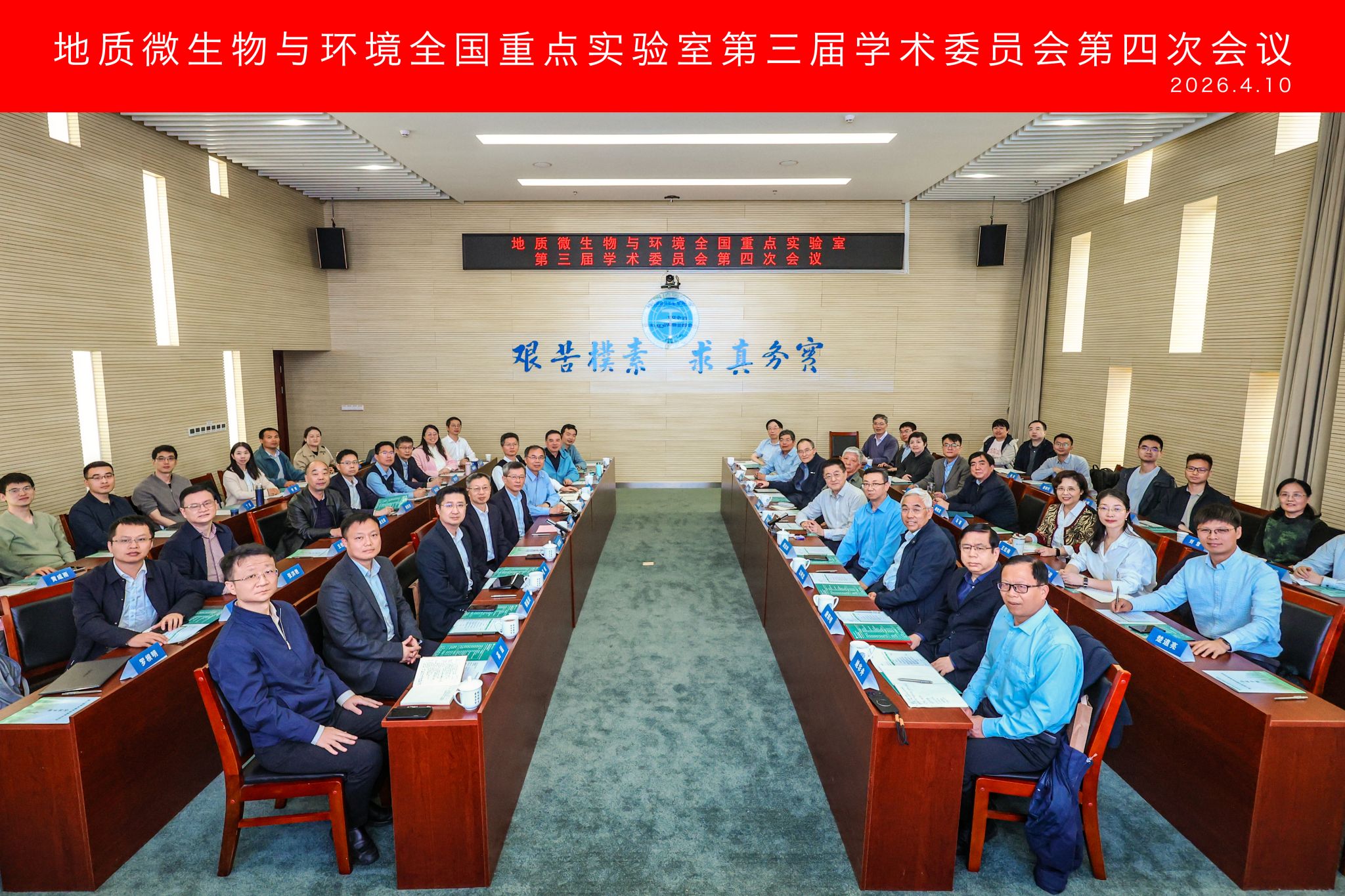 地大新闻网讯(通讯员 侯建湘) 4月10日,地质微生物与环境全国重点实验室第三届学术委员会第四次会议在我校未来城校区召开。学术委员会委员郭正堂院士、王成善院士、周忠和院士、彭平安院士、沈树忠院士、潘永信院士、吴丰昌院士(线上)、唐辉明院士、黄力研究员、姚华舟研究员参加会议,我校校长李建威,副校长章军锋、夏帆,中国地质大学(北京)科技处处长郑远川,实验室班子成员、实验室人才和重点重大项目负责人,以及部分骨干成员参加会议。本次会议围绕实验室重组后的工作布局、年度建设进展、学科融合创新与成果转化应用等核心议题深入研讨,为实验室高质量发展擘画方向。