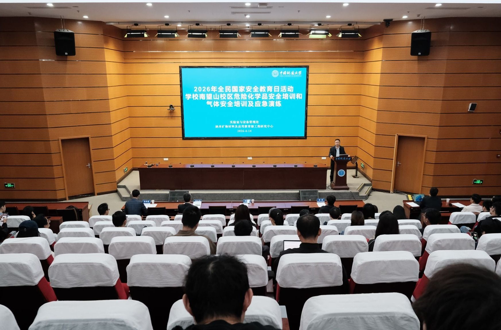 4月14日,危险化学品安全培训及气体安全培训与应急演练在南望山校区东区教学综合楼A0113会议室举行。实验室与设备管理处处长单华生、纳米矿物材料及应用教育部工程研究中心副主任黄金波,地球与行星科学学院、资源学院、工程学院等11个单位的280余名师生代表参加。