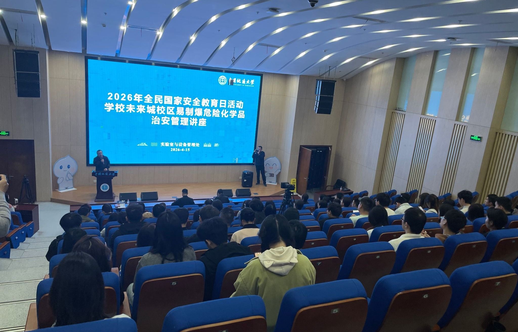 4月15日,易制爆危险化学品治安管理讲座在未来城校区科教四楼108学术报告厅举行。实验室与设备管理处副处长翁华强、环境学院实验教学中心主任潘欢迎,来自环境学院、材料与化学学院、地质过程与成矿预测全国重点实验室和地质微生物与环境全国重点实验室等未来城教学科研单位的150余名师生代表参加活动。