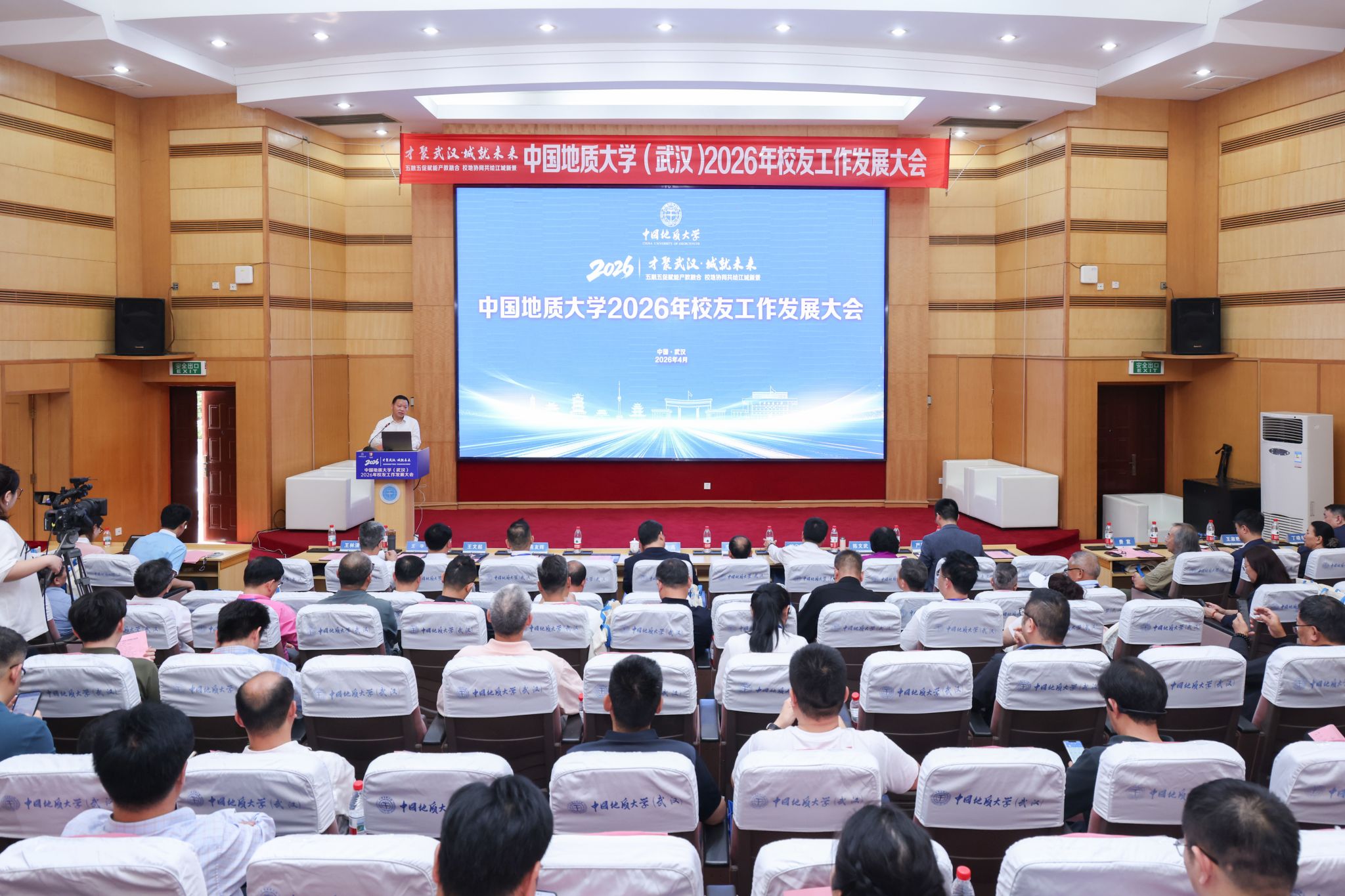 地大新闻网讯(记者 李锐欣 通讯员 于小清 姜力维)4月18日,我校2026年校友工作发展大会在南望山校区迎宾楼报告厅举行。在校校领导、各地校友会代表、有关部门和学院负责人、师生代表等参加活动。校党委副书记王林清主持会议。